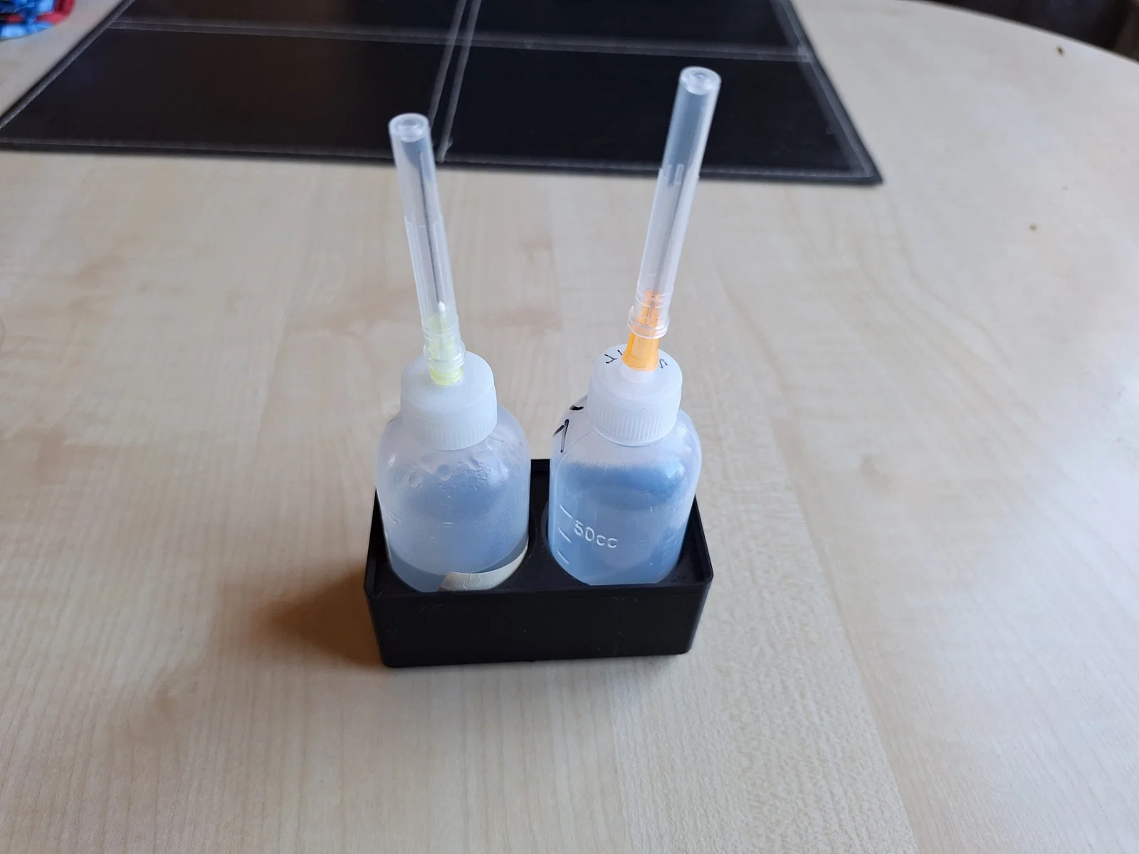 Việc để các chai chiết dung dịch nằm lung tung không chỉ gây mất diện tích mà còn tiềm ẩn nguy cơ đổ vỡ hoặc rò rỉ hóa chất ra bàn làm việc. Với khay in 3D này, bạn có thể cố định hai chai cùng lúc, tạo sự thuận tiện tối đa khi thao tác. Thiết kế tối giản, chắc chắn giúp bạn tiết kiệm thời gian tìm kiếm dụng cụ, từ đó nâng cao hiệu suất công việc. Đây là giải pháp nhỏ nhưng cực kỳ hiệu quả để tối ưu hóa không gian làm việc của các kỹ thuật viên hoặc người làm DIY.