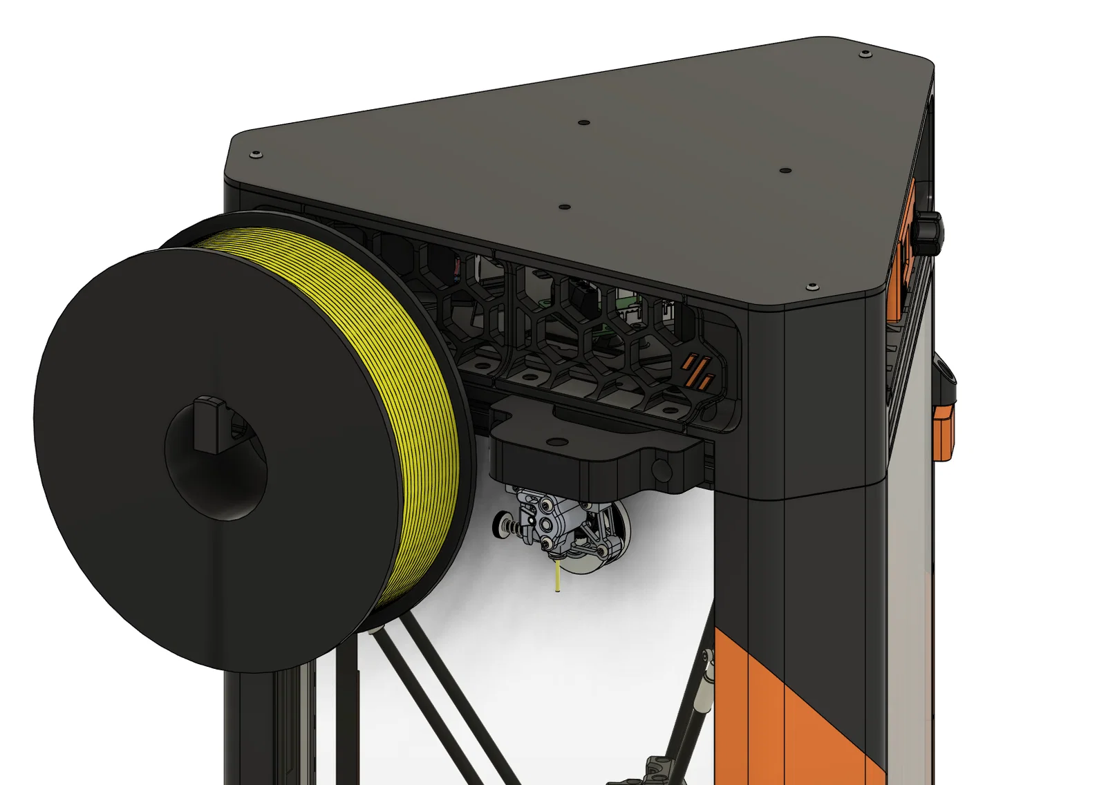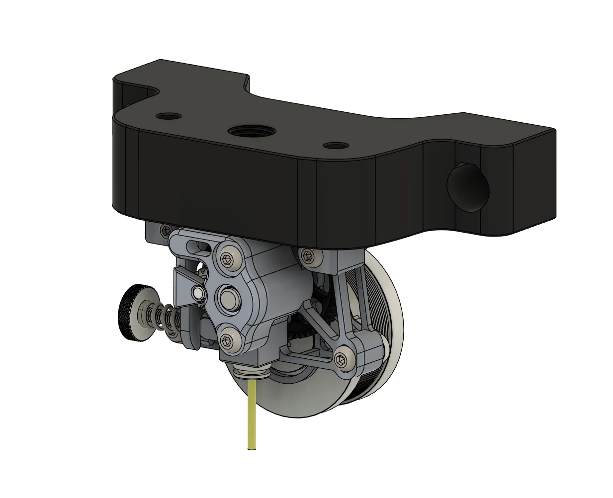 Phần ngàm gắn extruder gốc bị lồi ra ngoài ở một góc và tốn khá nhiều nhựa. Phiên bản của mình vẫn dùng bộ ốc vít cũ nhưng tiết kiệm nhựa hơn (và in cũng nhanh hơn). Nếu bạn không sử dụng tấm ốp bên hông máy, bạn có thể đảo ngược extruder để đưa ống bowden vào đầu in từ cạnh bên của máy in.