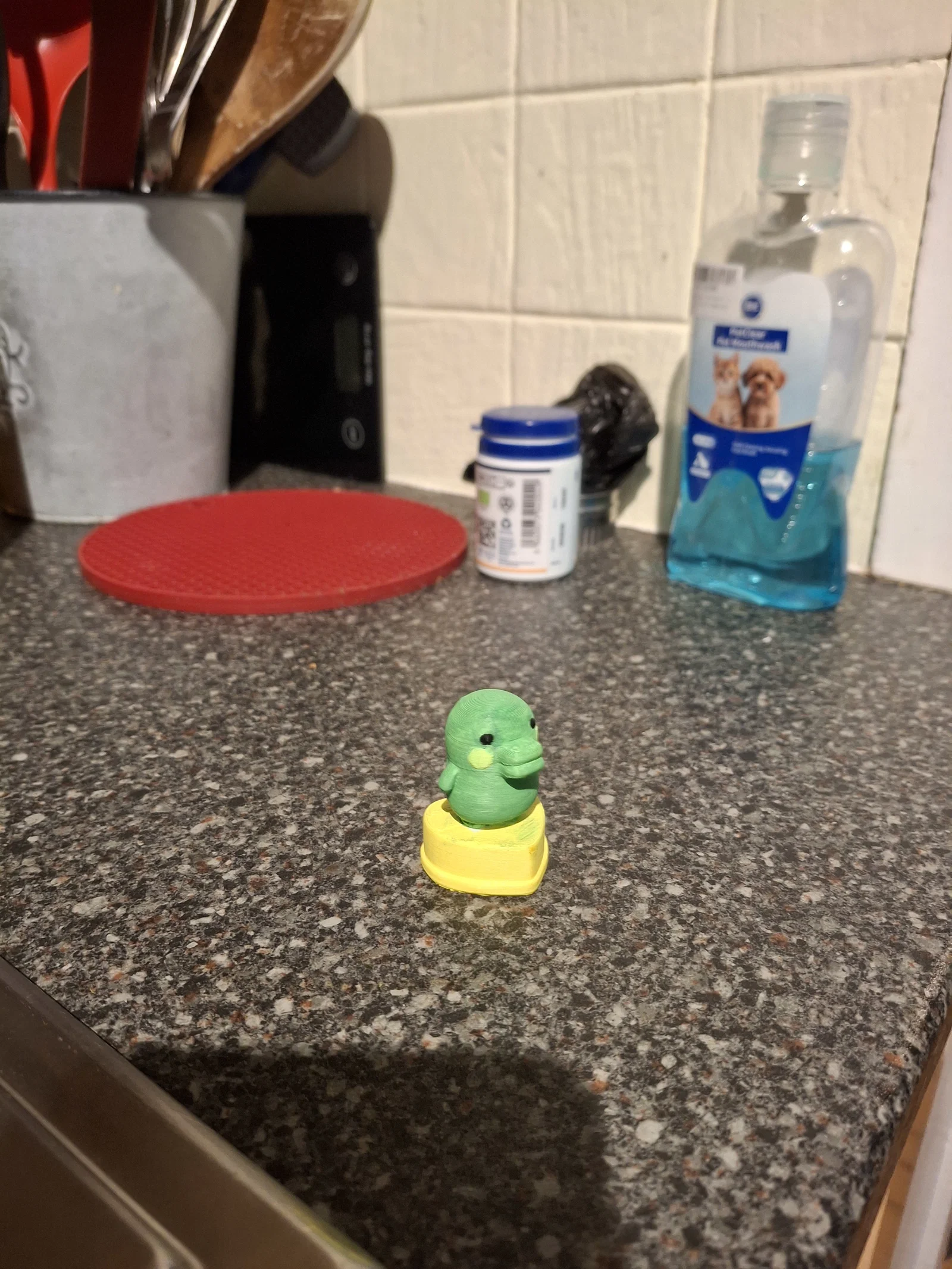 - Màu sắc: Bạn có thể in trực tiếp bằng nhựa màu xanh lá cho nhân vật và màu vàng cho phần đế, sau đó chỉ cần vẽ thêm mắt và má hồng là đã có một món đồ chơi hoàn hảo.