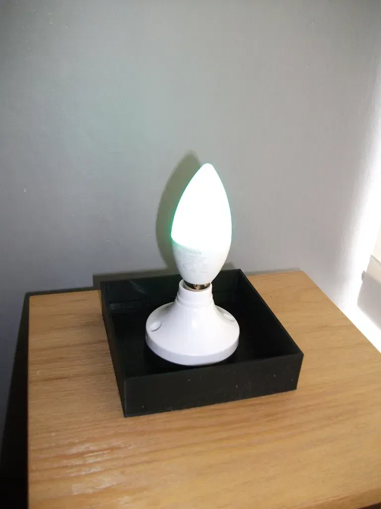 Tôi đã có một đế đèn E14 và một bóng đèn nến đổi màu nằm xung quanh. Vì vậy, đây là một đế mà tôi đã tạo ra để phù hợp với chiếc đèn nhăn tuyệt đẹp được thiết kế bởi LoboCNC (Thing 676350).
