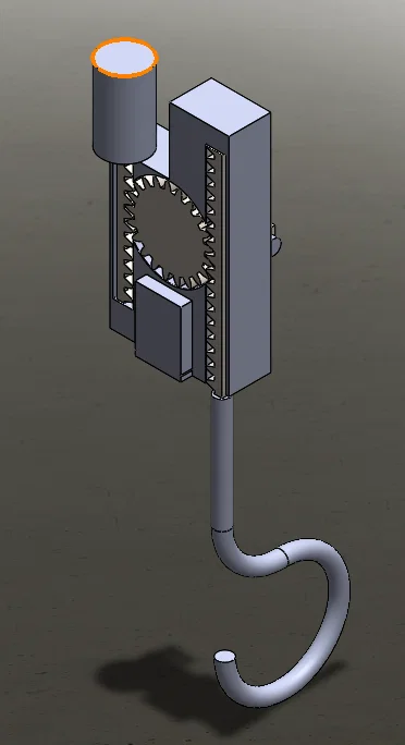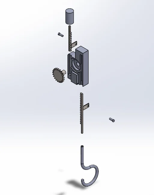 Hệ thống truyền động Rack and Pinion (thanh răng và bánh răng) dùng cho Arctic Anchor. Cơ chế này hoạt động theo kiểu khi móc treo chịu trọng lượng của chùm chìa khóa, thanh răng gắn với trục hình trụ sẽ di chuyển lên trên. Đây là một hệ thống ròng rọc vận hành ổn định, được thiết kế chuyên nghiệp trên phần mềm SolidWorks.