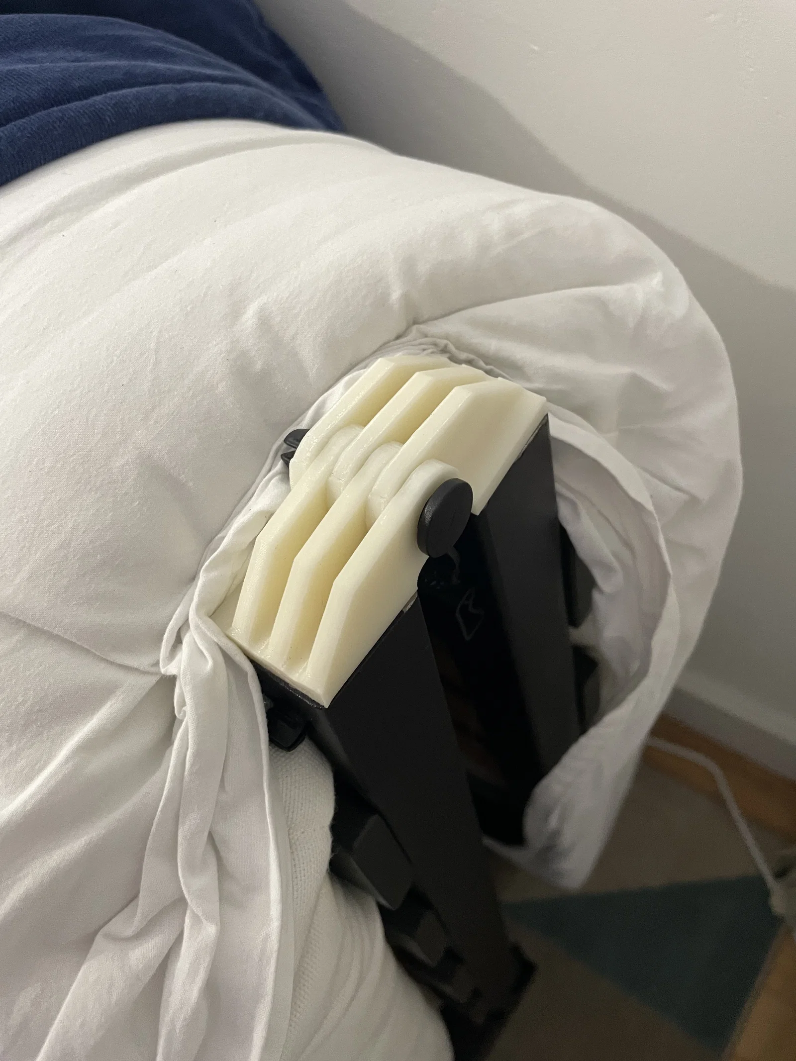 Cái bản lề trên ghế sofa giường IKEA LYCKSELE của mình bị gãy nên mình đã tự thiết kế lại món này để sửa chữa. Kích thước thì tương đối ổn rồi, tuy nhiên mình có phải gọt bớt một chút nhựa vì lỗ trên khung kim loại bên trong chưa được xử lý ba-vớ kỹ.