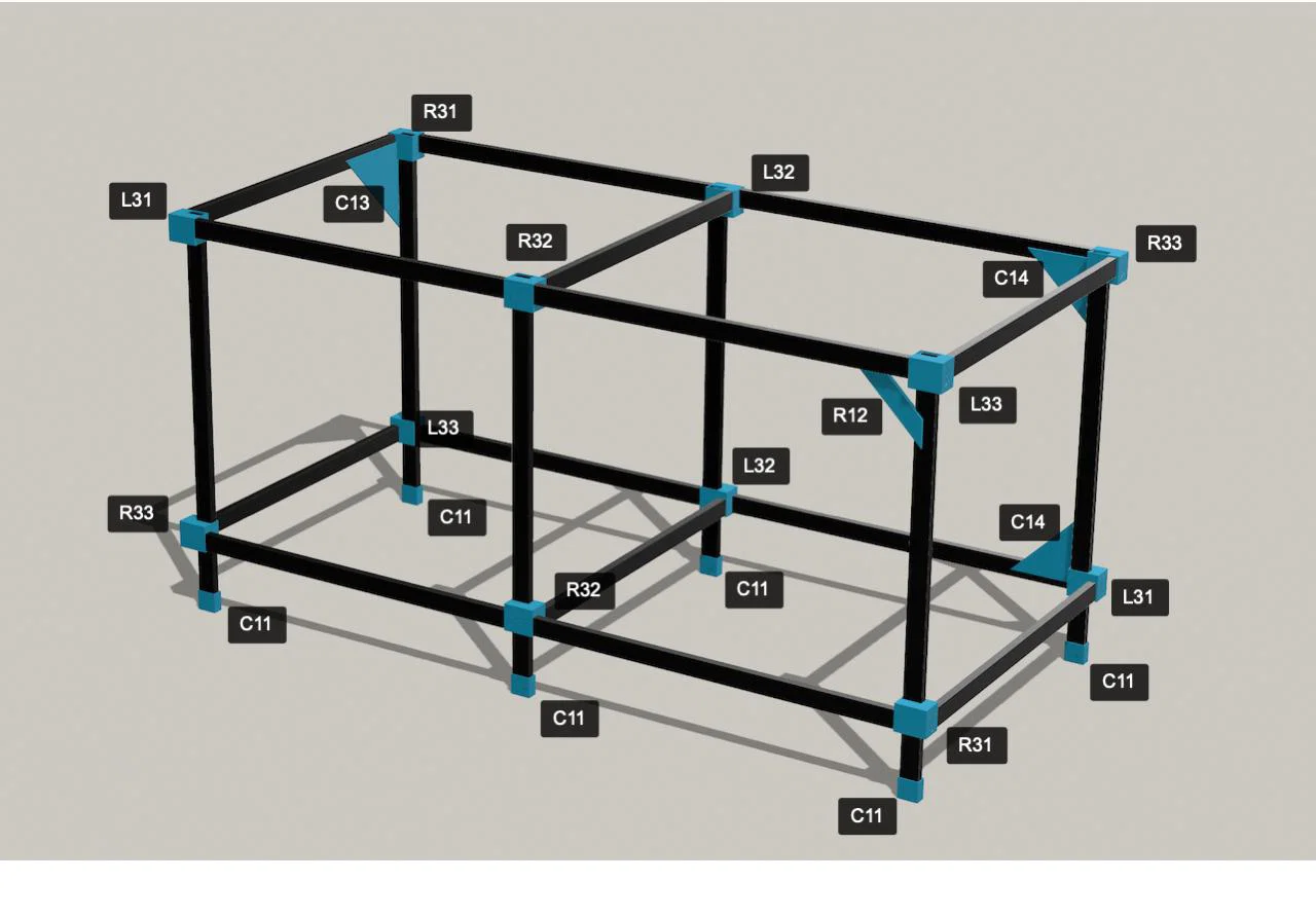 Tự làm kệ và giá đỡ từ ống thép 20×40mm với CRAFTO JOIN. Bản demo miễn phí này cung cấp 2 chi tiết cơ bản là chân đế và khớp nối góc XYZ. Dễ in, bền bỉ và không cần support, phù hợp cho mọi không gian nhà xưởng hay gara của bạn.
