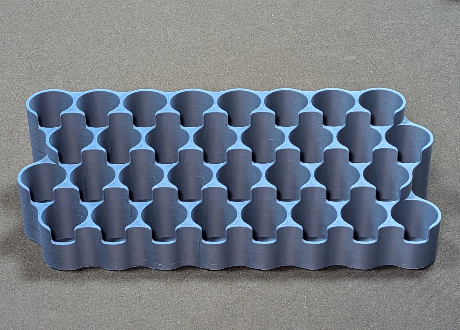 Đây là mẫu giá đỡ dạng bậc thang được thiết kế cho các lọ sơn kiểu đầu nhỏ giọt (droplet style) dung tích từ 18-25ml. Phiên bản lớn chứa được 32 lọ, phiên bản nhỏ chứa 16 lọ và phiên bản mini chứa 4 lọ. Mẫu này in rất tốt với nhựa PLA hoặc PETG, không cần support, không cần brim, thiết lập 3 lớp vỏ (walls), 5 lớp bề mặt trên/dưới (top/bottom solid layers) và độ lấp đầy (infill) từ 5-10%.