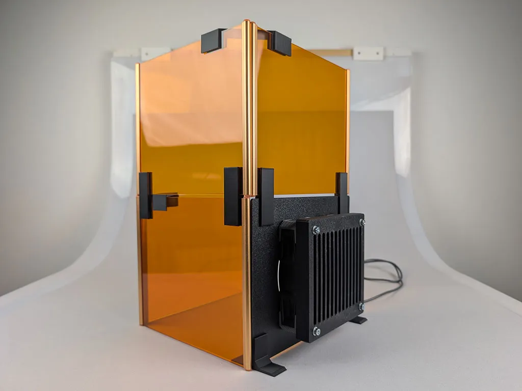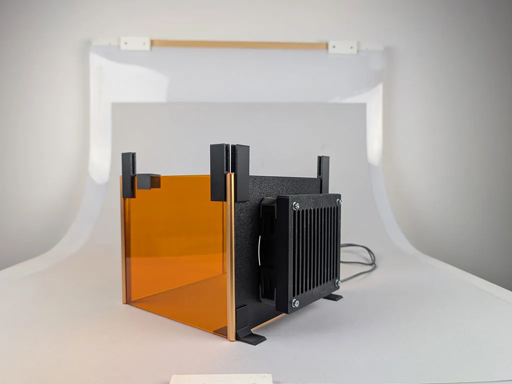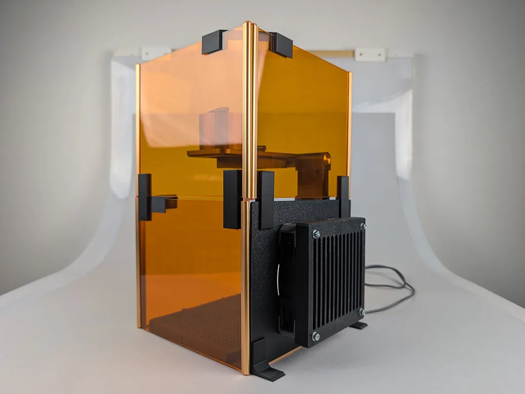 Bộ linh kiện in 3D này cho phép bạn lắp ráp các vách ngăn từ tính xếp chồng lên nhau, giúp tăng cường khả năng bảo vệ mắt khi sử dụng. Mô hình được thiết kế để gắn vừa một chiếc quạt máy tính 120mm, 12V vào một trong các tấm vách. Bộ sản phẩm bao gồm 3 phần giúp bạn dựng một vách thông gió tích hợp quạt và màng lọc, nhờ đó khói bụi sẽ được quạt hút và giữ lại bên trong bộ lọc. Ngoài các bộ phận cho vách thông gió, còn có thêm 3 thành phần khác giúp bạn lắp ráp các vách ngăn lại với nhau, làm cho cấu trúc tổng thể trở nên chắc chắn hơn.