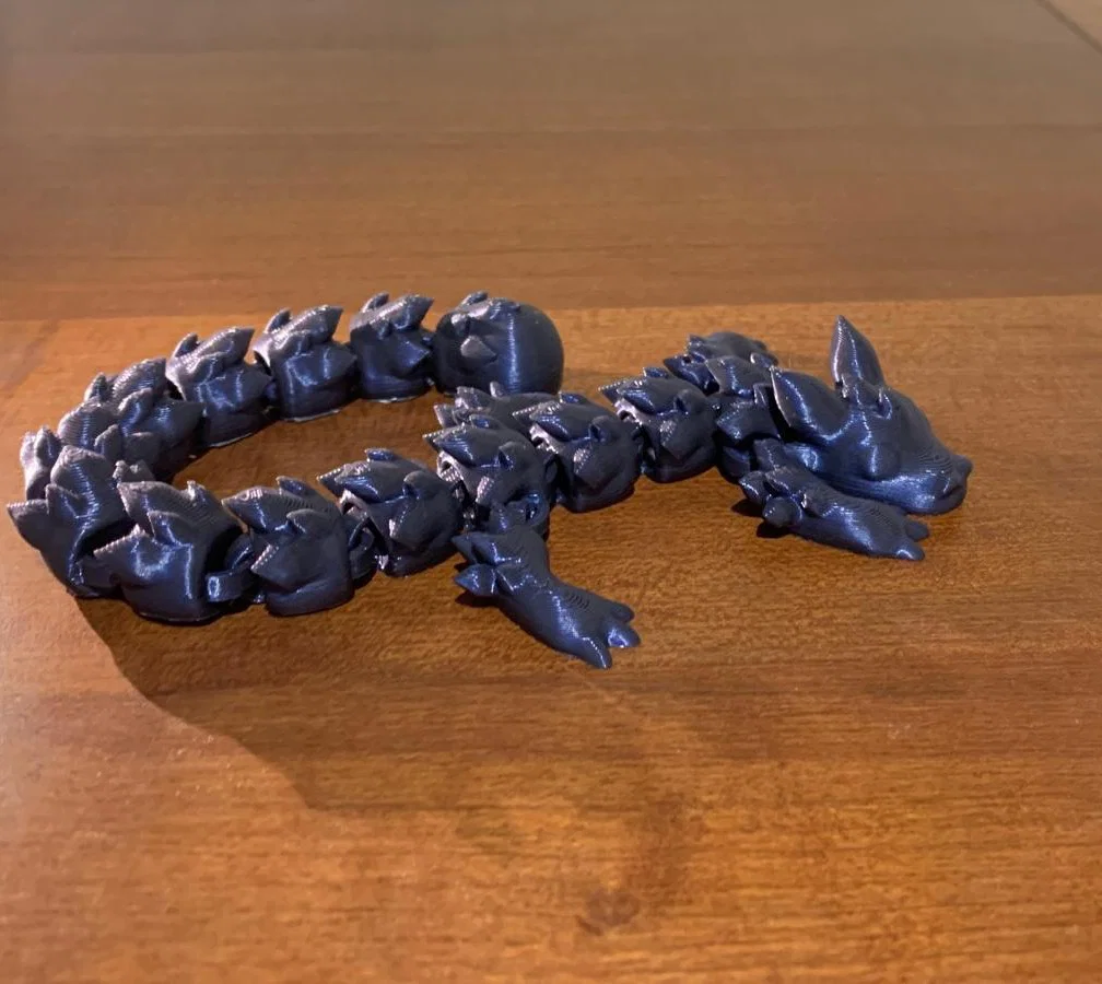 Các khớp nối linh hoạt của rồng cử động rất mượt mà ngay sau khi in. Mẫu này được tối ưu hóa cho máy in FDM và cực kỳ thân thiện với người mới bắt đầu. Sản phẩm này làm đồ chơi để bàn, vật trang trí hoặc làm quà tặng đều rất tuyệt vời.