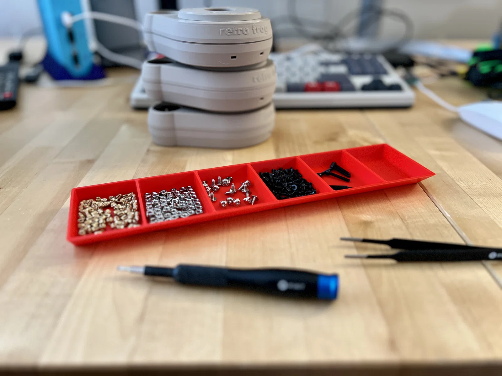 Mình cần mấy cái khay đựng linh kiện đơn giản để sắp xếp ốc vít và vài thứ nhỏ nhặt trong lúc làm mấy cái joystick tùy chỉnh, nên mình đã thiết kế mấy cái này và muốn chia sẻ với mọi người.