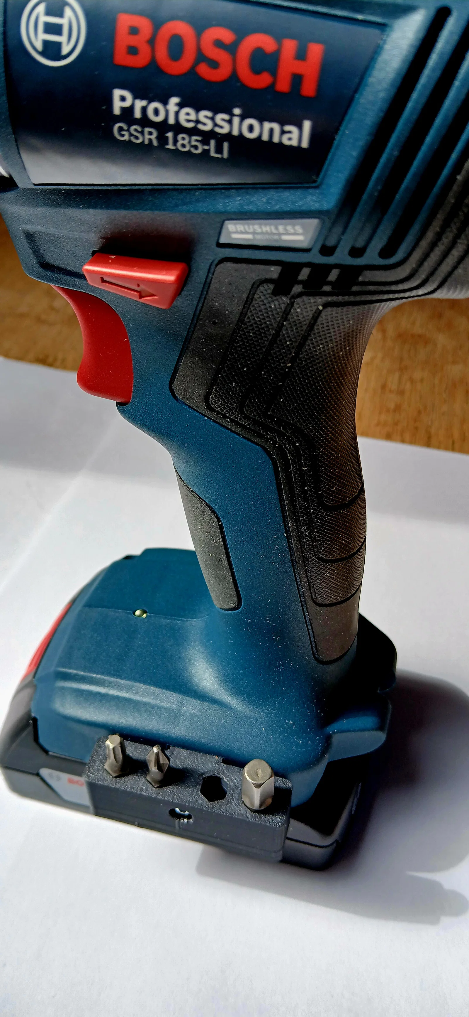 Khay được thiết kế tinh tế để ôm sát vào phần đế pin của dòng máy khoan Bosch GSR 185-LI. Việc lắp đặt vô cùng đơn giản, không làm ảnh hưởng đến cấu tạo hay tính thẩm mỹ của máy. Với khay này, anh em có thể mang theo cùng lúc nhiều loại đầu vít khác nhau, từ đầu bake, đầu sao cho đến các đầu chuyển đổi, giúp công việc sửa chữa trở nên chuyên nghiệp và nhanh chóng hơn bao giờ hết.
