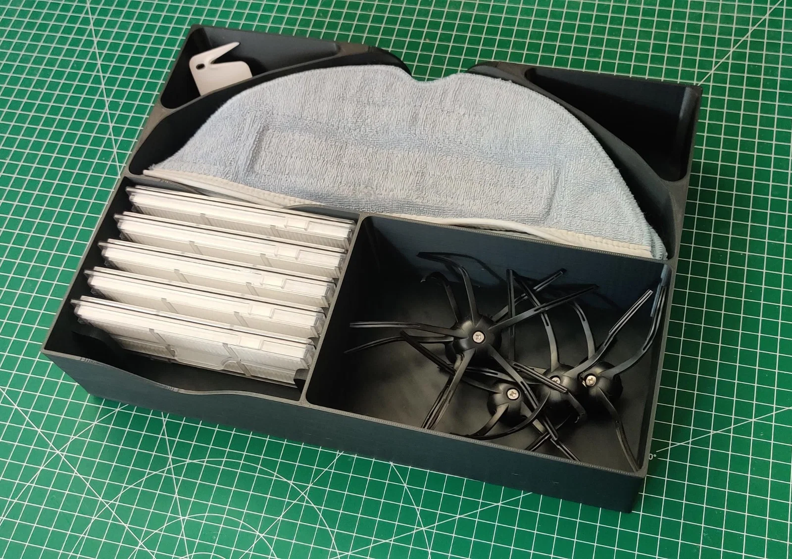 Bạn đang cảm thấy đau đầu vì các linh kiện thay thế của robot hút bụi Roborock S7 như giẻ lau, chổi quét hay bộ lọc luôn bị để bừa bãi? Hãy in ngay chiếc khay tiện ích này để giải quyết tình trạng đó. Với thiết kế chuyên biệt, khay có thể chứa tới 6 bộ lọc, hơn 10 giẻ lau và hơn 10 chổi cạnh cùng một lúc, kèm theo đó là những ngăn nhỏ để bạn cất thêm các dụng cụ vệ sinh khác. Sản phẩm được thiết kế tối ưu cho in 3D, giúp bạn tạo ra một không gian lưu trữ ngăn nắp, khoa học và cực kỳ bền bỉ. Đây là giải pháp hoàn hảo để giữ các phụ kiện quan trọng của robot hút bụi luôn sạch sẽ, sẵn sàng sử dụng bất cứ khi nào bạn cần thay thế, giúp công việc dọn dẹp nhà cửa trở nên chuyên nghiệp và thuận tiện hơn bao giờ hết.