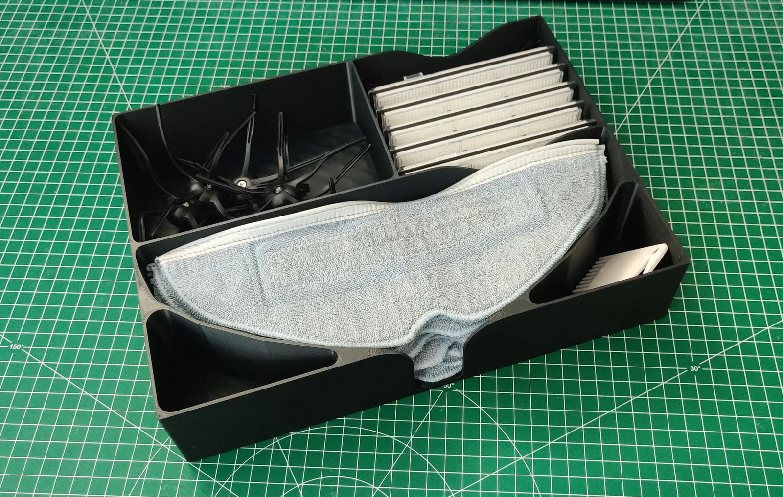 Bạn đang sở hữu một chiếc máy hút bụi thông minh Roborock S7 và cảm thấy phiền lòng vì đống phụ kiện như giẻ lau, bộ lọc, chổi quét nằm lung tung khắp nơi? Đừng lo lắng, khay sắp xếp phụ kiện 3D này chính là giải pháp hoàn hảo giúp bạn quản lý mọi thứ một cách khoa học và gọn gàng nhất. Thay vì phải lục lọi trong các túi nilon hay hộp đựng lộn xộn, bạn có thể gom tất cả vào một chiếc khay được thiết kế riêng biệt, giúp không gian sống trở nên ngăn nắp và chuyên nghiệp hơn hẳn.