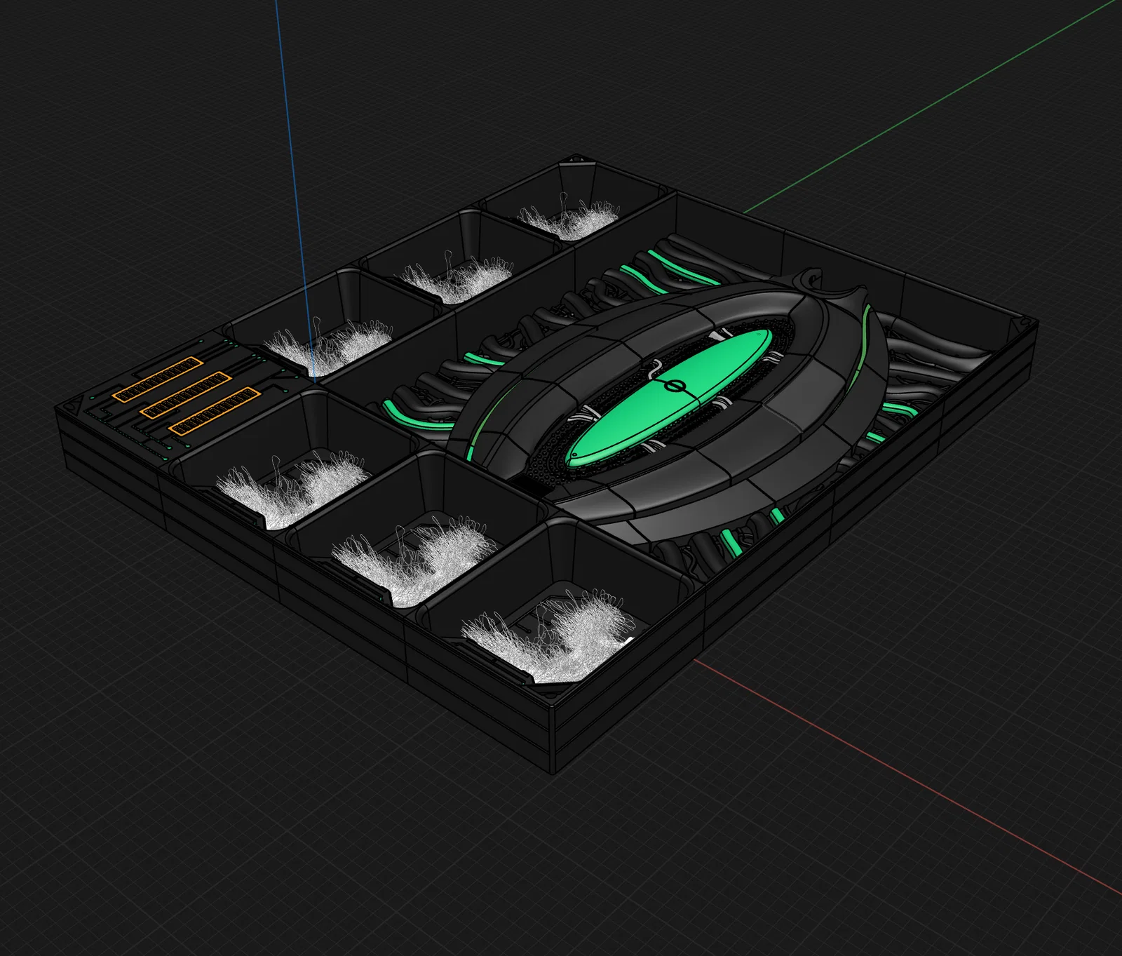 — Trước tiên, hãy in 16 tệp "Base" (Phối màu tiêu chuẩn: đen). Không cần dùng support, nhưng lớp brim sẽ giúp cố định đế chắc chắn hơn trên bàn in. Sau đó lắp ráp chúng bằng vít và đai ốc.