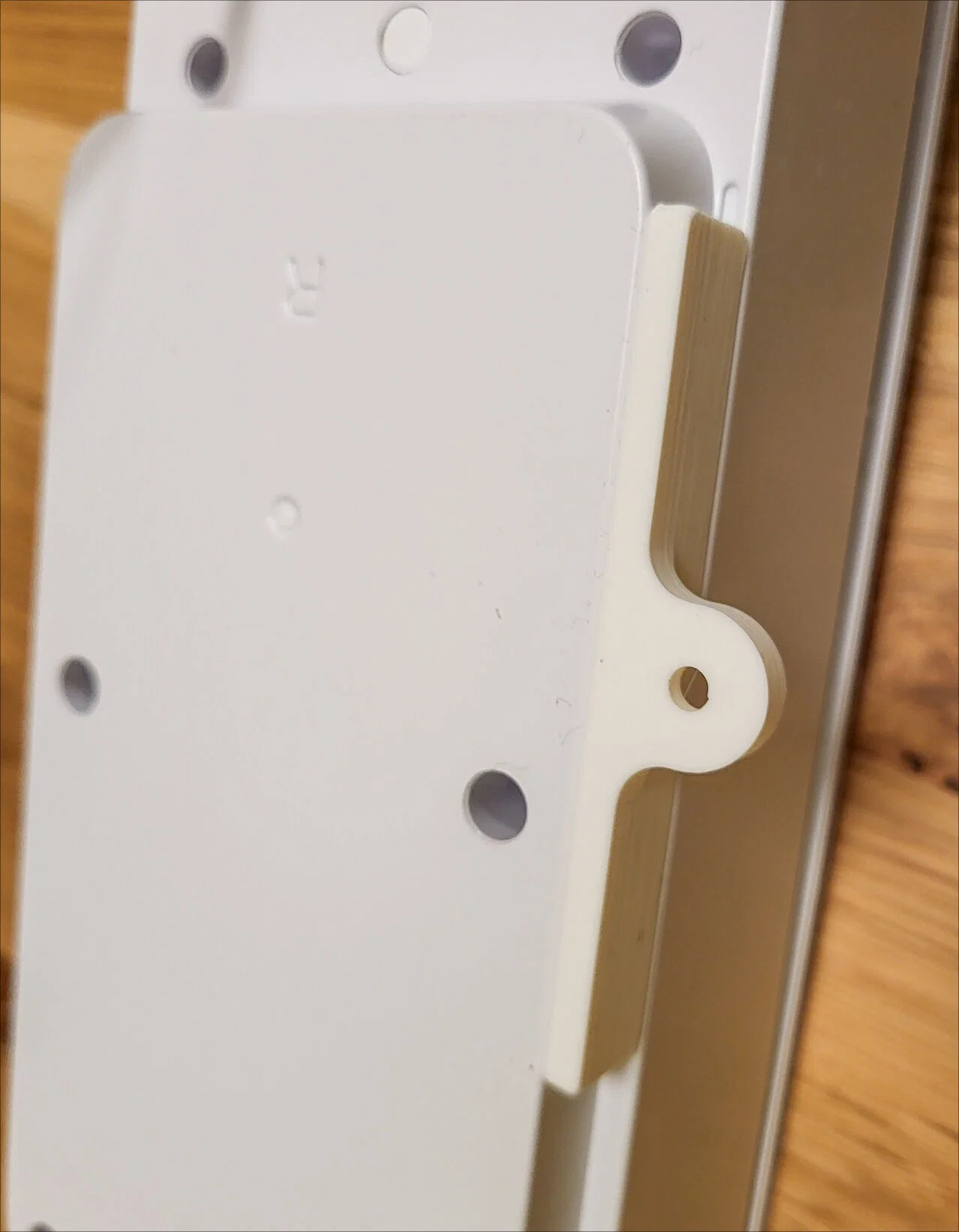 Bạn hãy in bốn cái và tận dụng lại ốc vít zin khi thay thế phần giá đỡ gốc bằng loại này nhé. Nhớ bật hỗ trợ (support) cho các chốt treo lơ lửng (đã được cài đặt sẵn trong file .3mf). Để lắp giá vào bề mặt mong muốn, bạn hãy dùng bốn con vít đầu bằng 4mm.