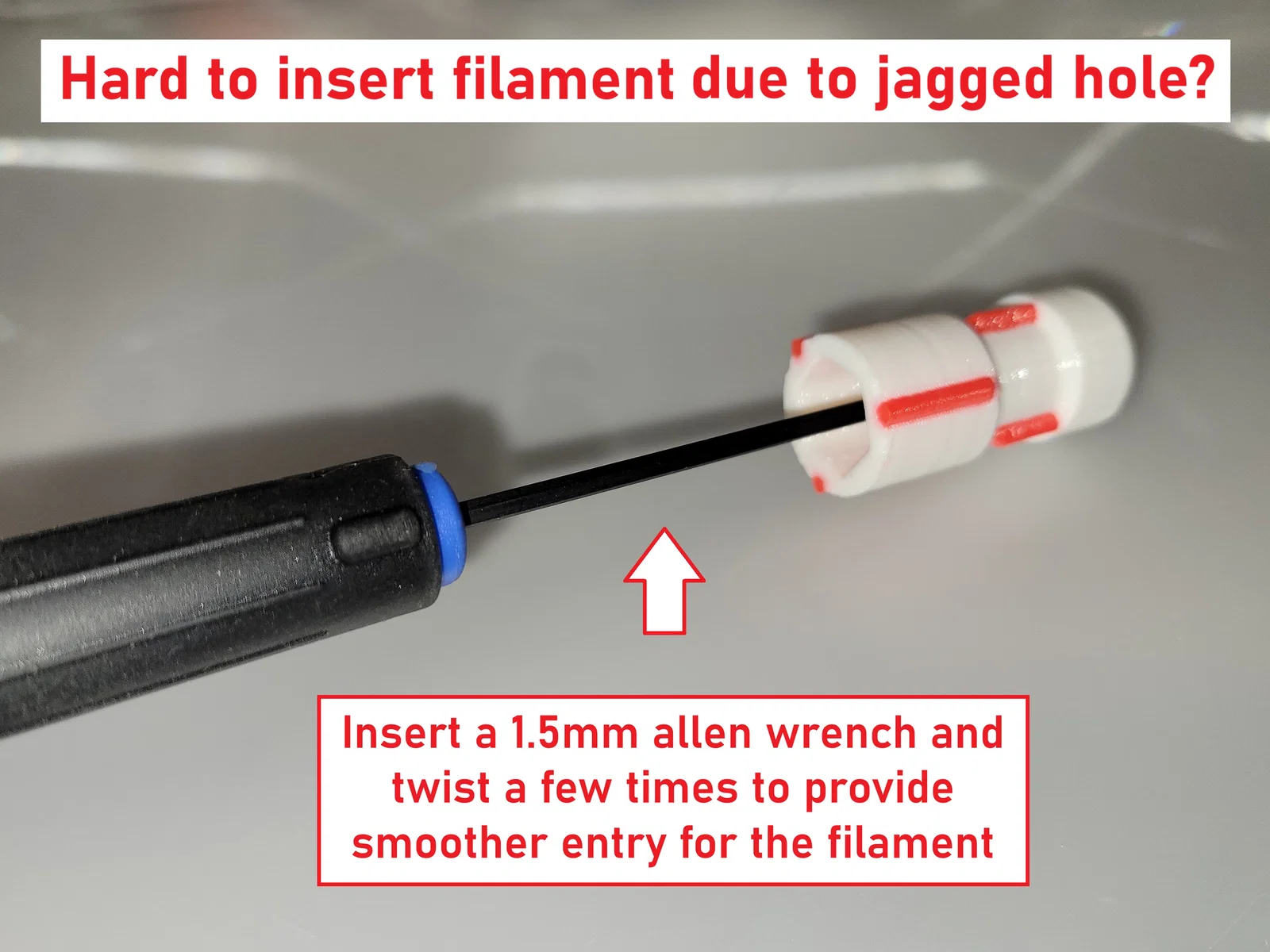 Nếu lỗ trong của đế TPU hơi hẹp, hãy dùng chìa lục giác 1.5mm xoay vài vòng để làm trơn đường dẫn: