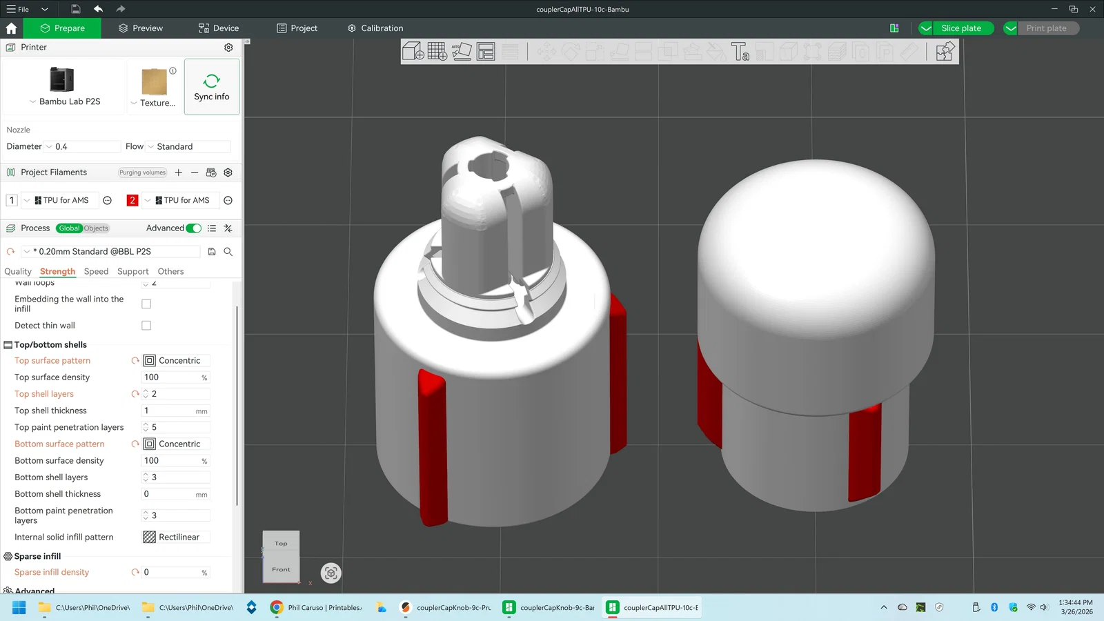 Lưu ý: Để có độ bám tốt nhất, hãy in cả Đế và Núm bằng "TPU for AMS" của Bambu Lab (độ cứng 68D). Nếu dùng TPU 95A, phần Núm bắt buộc phải in bằng PLA hoặc PETG.