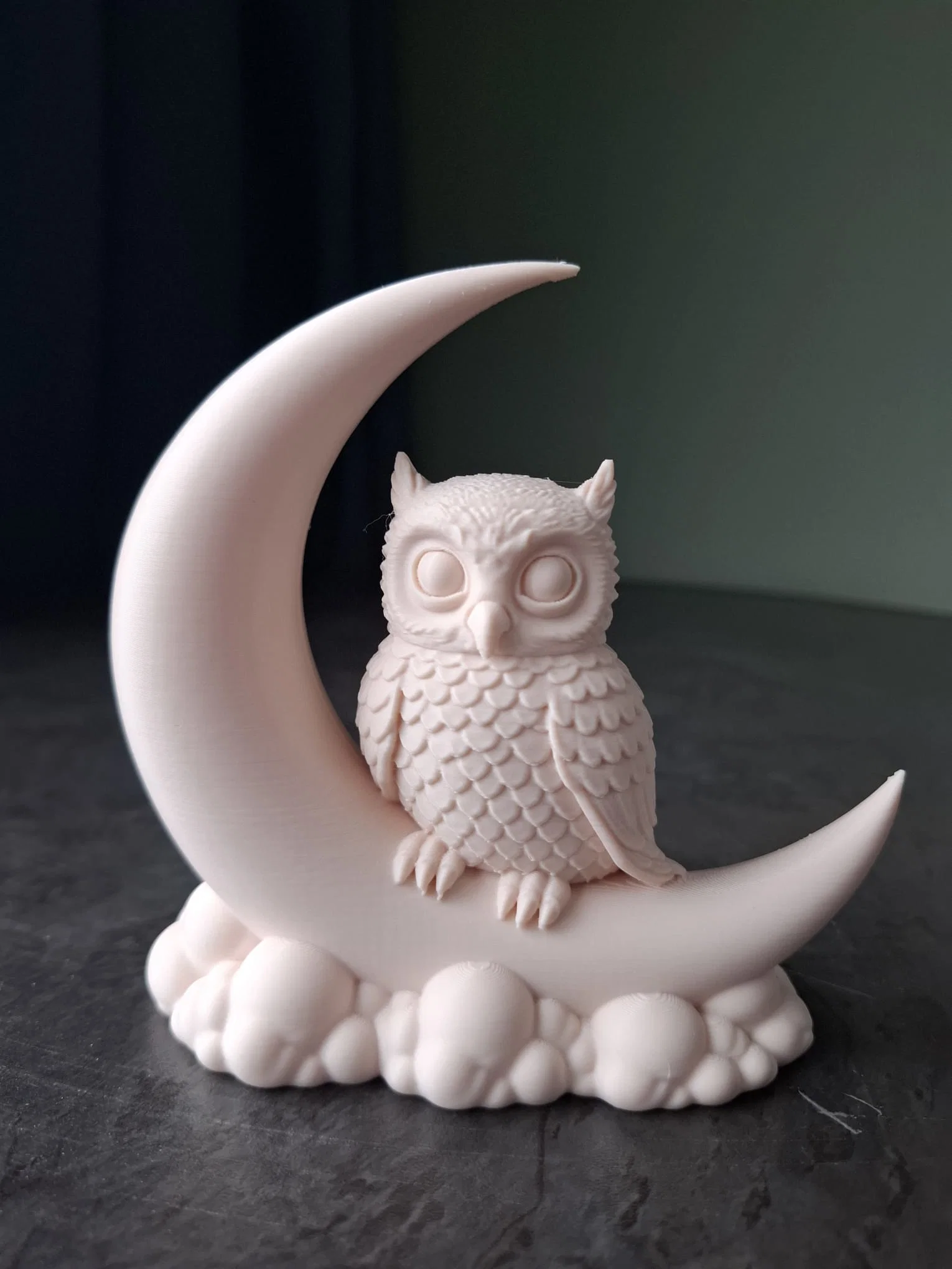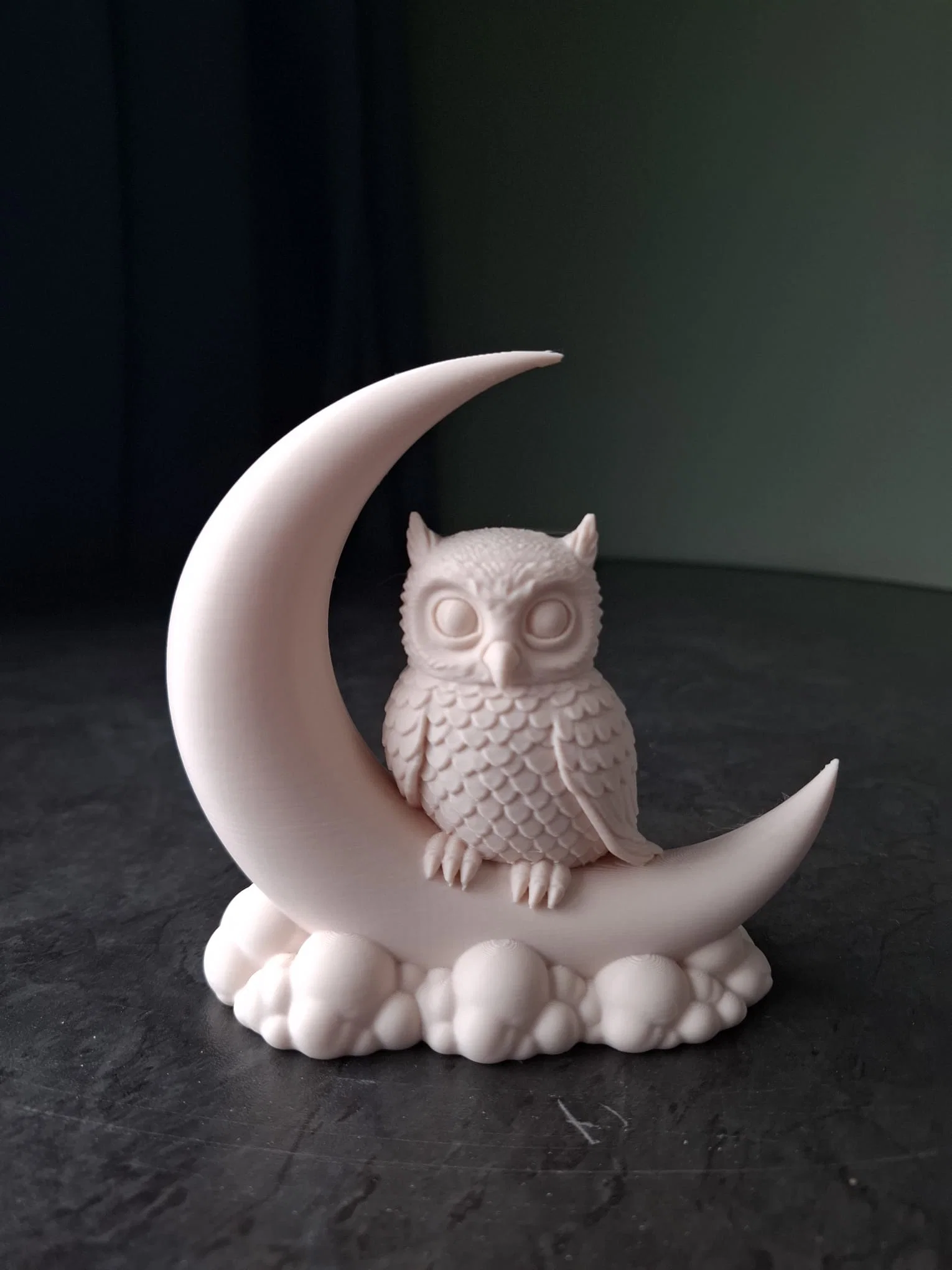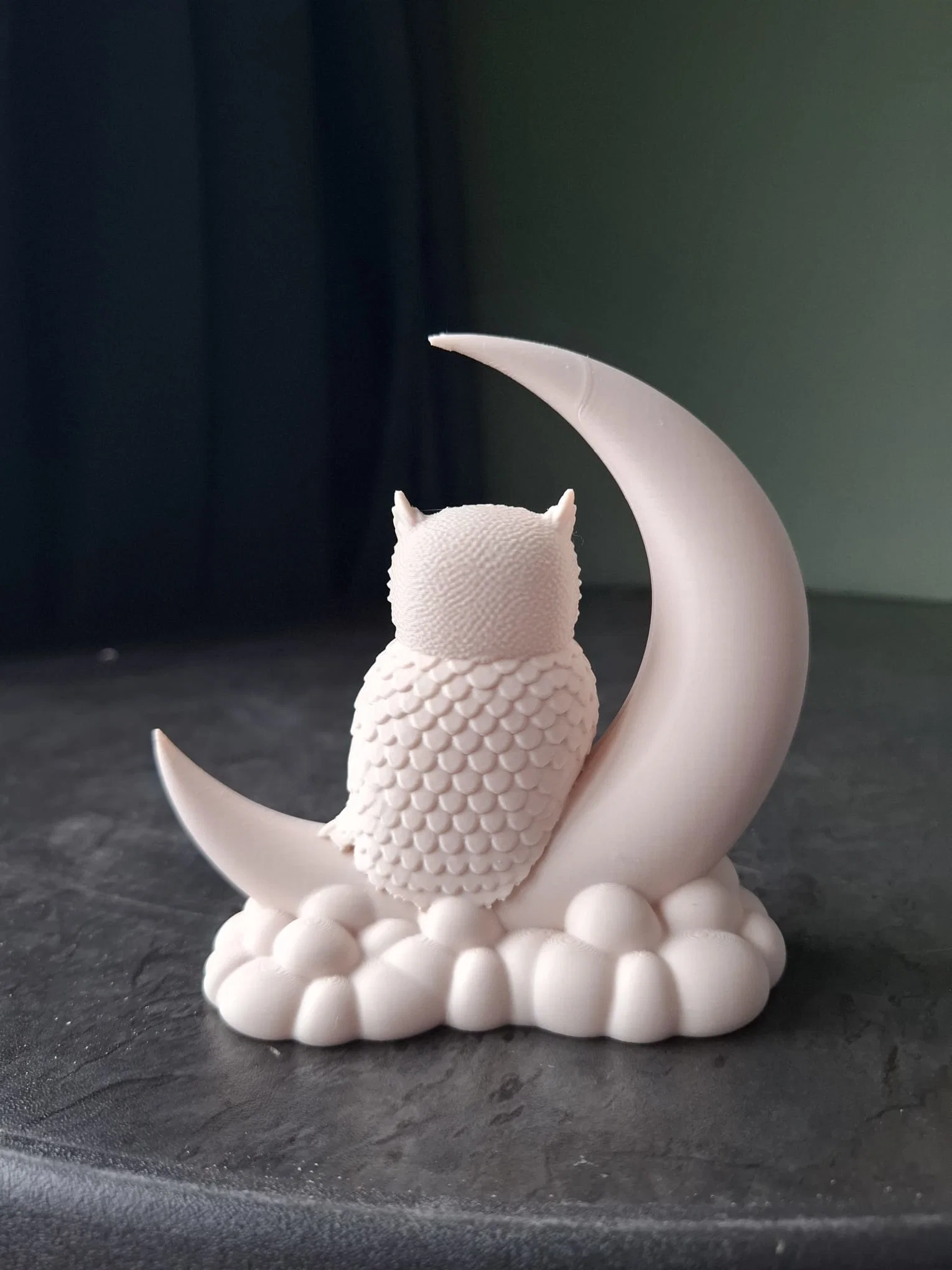 Mô hình chú cú nhỏ xinh ngồi trên trăng khuyết cực kỳ bắt mắt. Thiết kế tinh xảo, ấm áp, rất thích hợp để trang trí bàn làm việc hoặc góc học tập. Thông số in: layer height 0.2, cần dùng support và 3 walls.