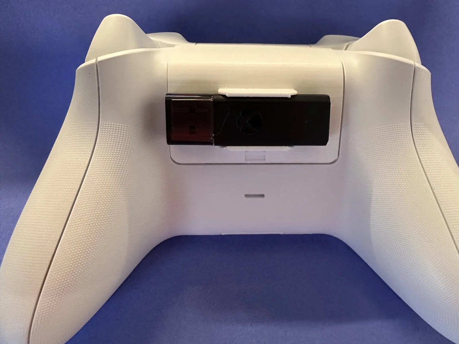 Mình đã thiết kế thêm một giá đỡ cho Microsoft Wireless USB adapter ngay trên nắp pin Xbox Series X/S. Thiết kế này giúp bạn giữ gọn adapter mà không hề gây vướng víu tay khi chơi. Tương thích với nhiều loại nhựa như PLA.