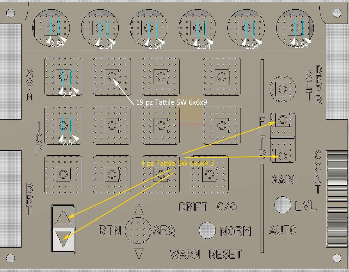 Dự án thiết kế lại bảng điều khiển ICP V2 cho buồng lái F-16 với tính năng đèn nền backlight. Sử dụng microswitch 6x6x9 và 6x6x4.3, kết hợp in 3D nhựa trong suốt và PLA trắng để tạo nên bộ nút bấm chuyên nghiệp, chính xác cho các phi công mô phỏng.