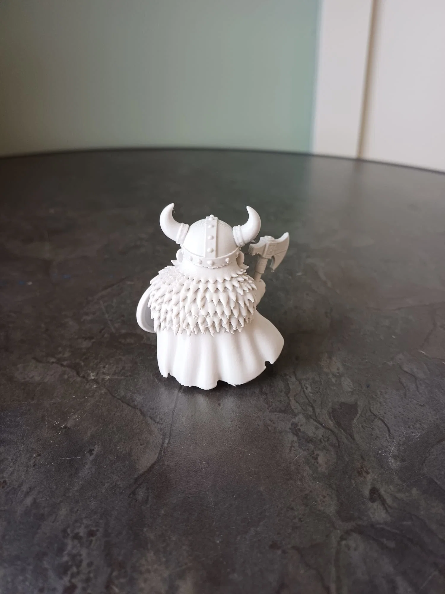Mô hình chiến binh Viking thu nhỏ chi tiết với rìu và khiên, mang phong cách fantasy mạnh mẽ. Phù hợp cho board game, sưu tầm hoặc trang trí bàn làm việc. Khuyến nghị in với độ phân giải 0.16mm, 3 lớp tường và 10% infill.