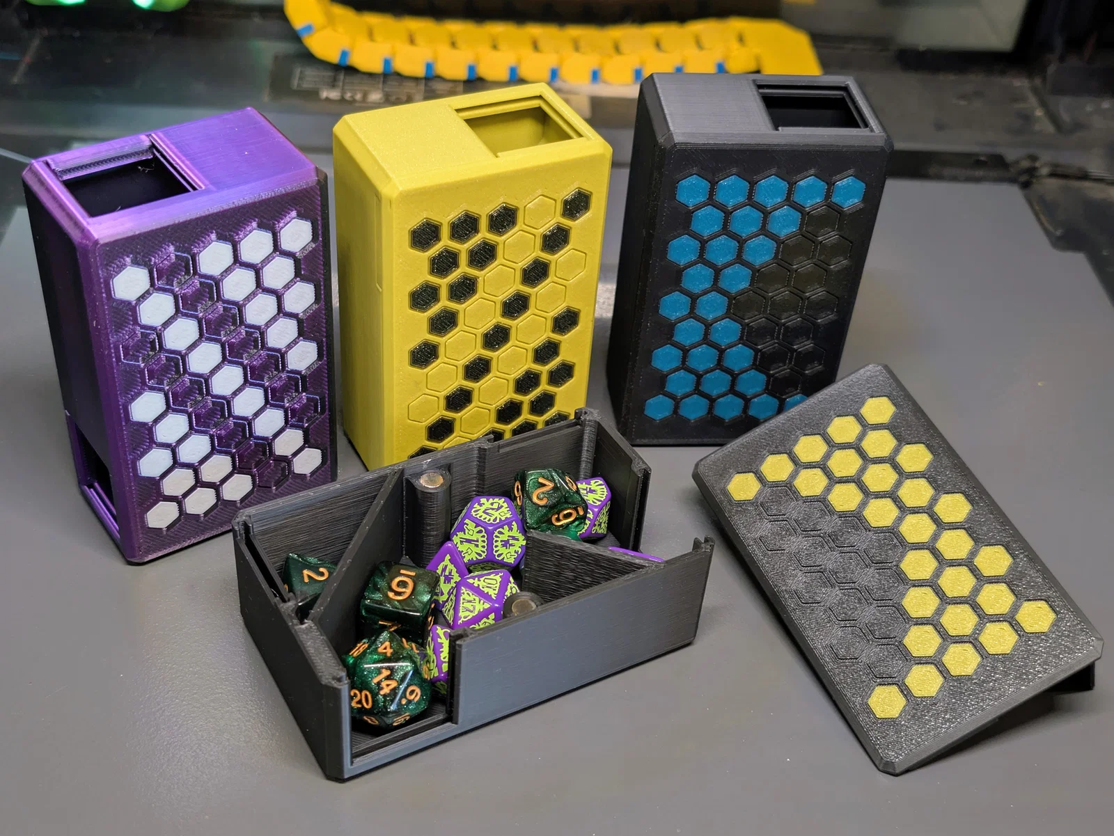 Mẫu hộp đựng xúc xắc tiện lợi, vừa có thể cất giữ hai bộ xúc xắc, vừa biến hình thành tháp đổ xúc xắc cực kỳ linh hoạt. Thiết kế tối ưu, dễ in và mang tính thẩm mỹ cao cho người chơi board game.