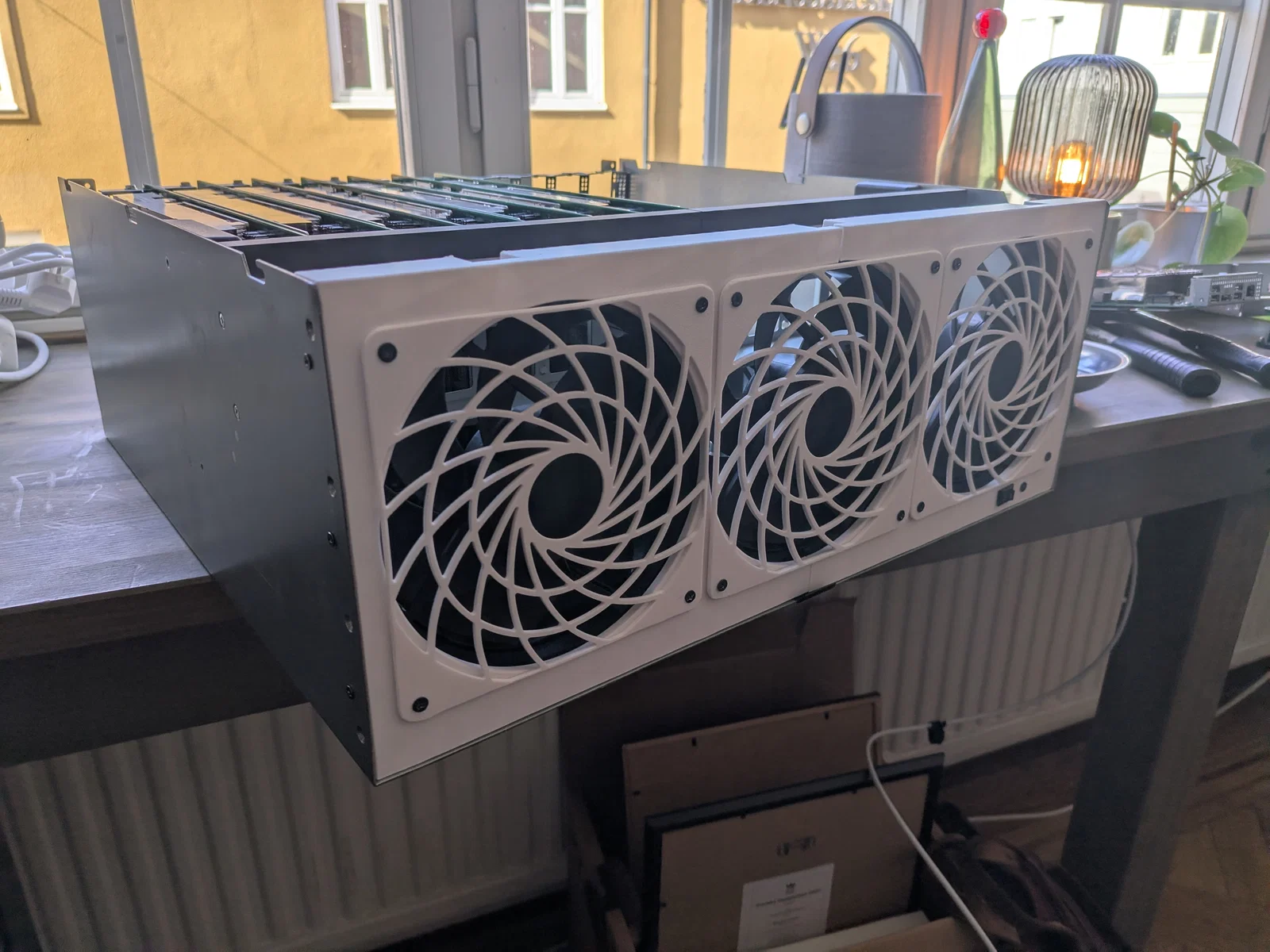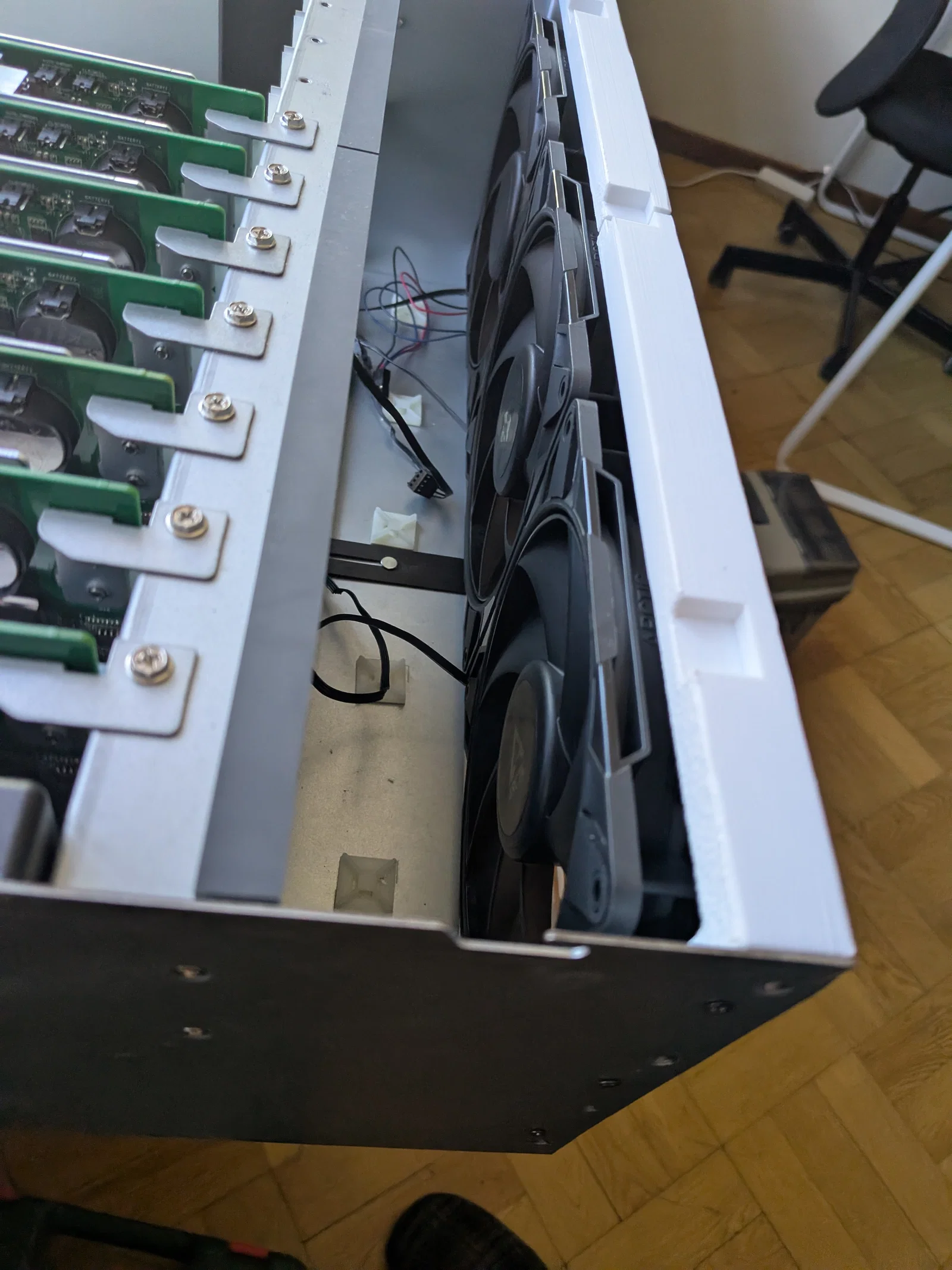 Mình muốn sử dụng loại quạt êm hơn cho thùng máy Asrock 4U12G, nơi mình đang lắp 12 máy tính BC250.