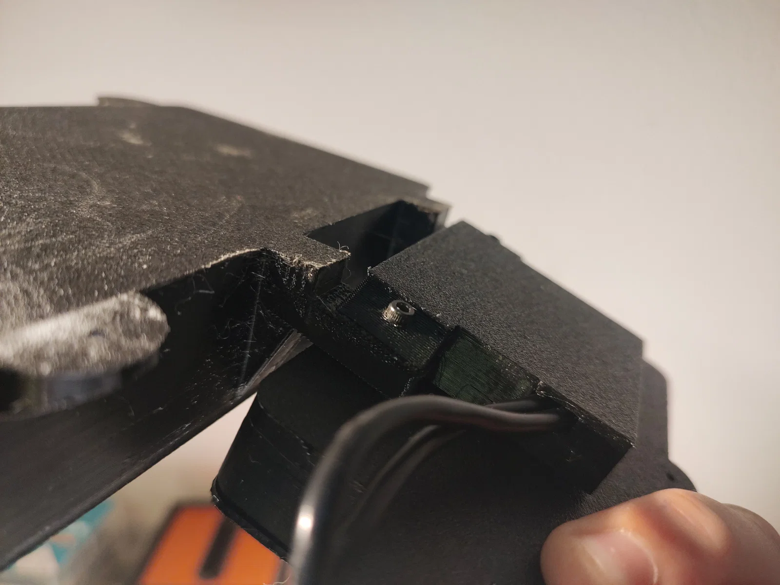 Toàn bộ linh kiện được bảo vệ bằng vỏ ngoài 3D được in màu đen theo thiết kế mô-đun. Các thành phần được cố định chắc chắn bằng 12 ốc vít M2.5 x 14 mm, giữ cho phần vỏ đầu đọc và bộ phận màn hình chính gắn chặt với nhau.