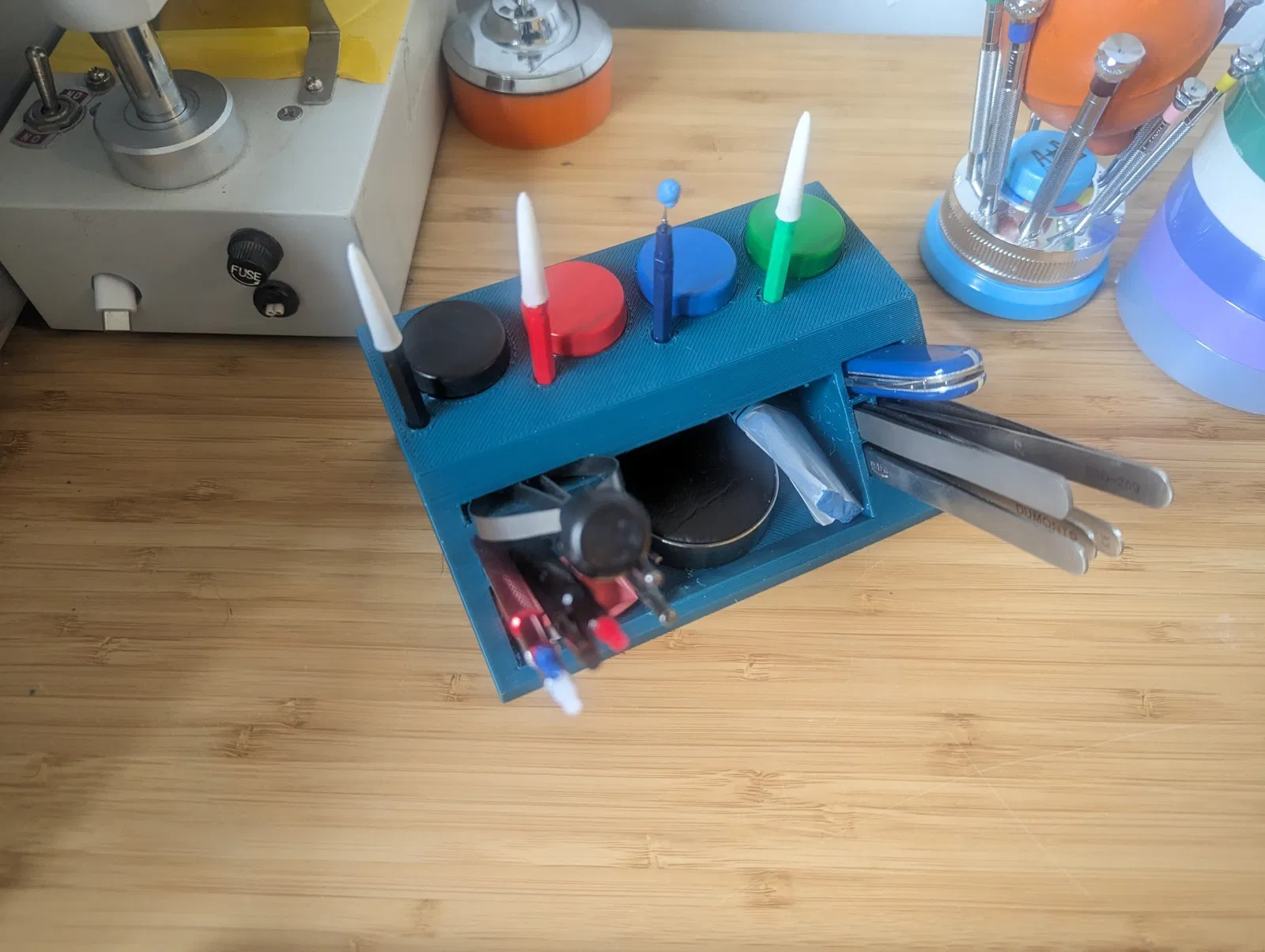 Nó được xây dựng xung quanh các công cụ của tôi. Nó được in bằng PLA với 15% độ đặc. Nó cảm thấy chắc chắn và đã tồn tại tốt.