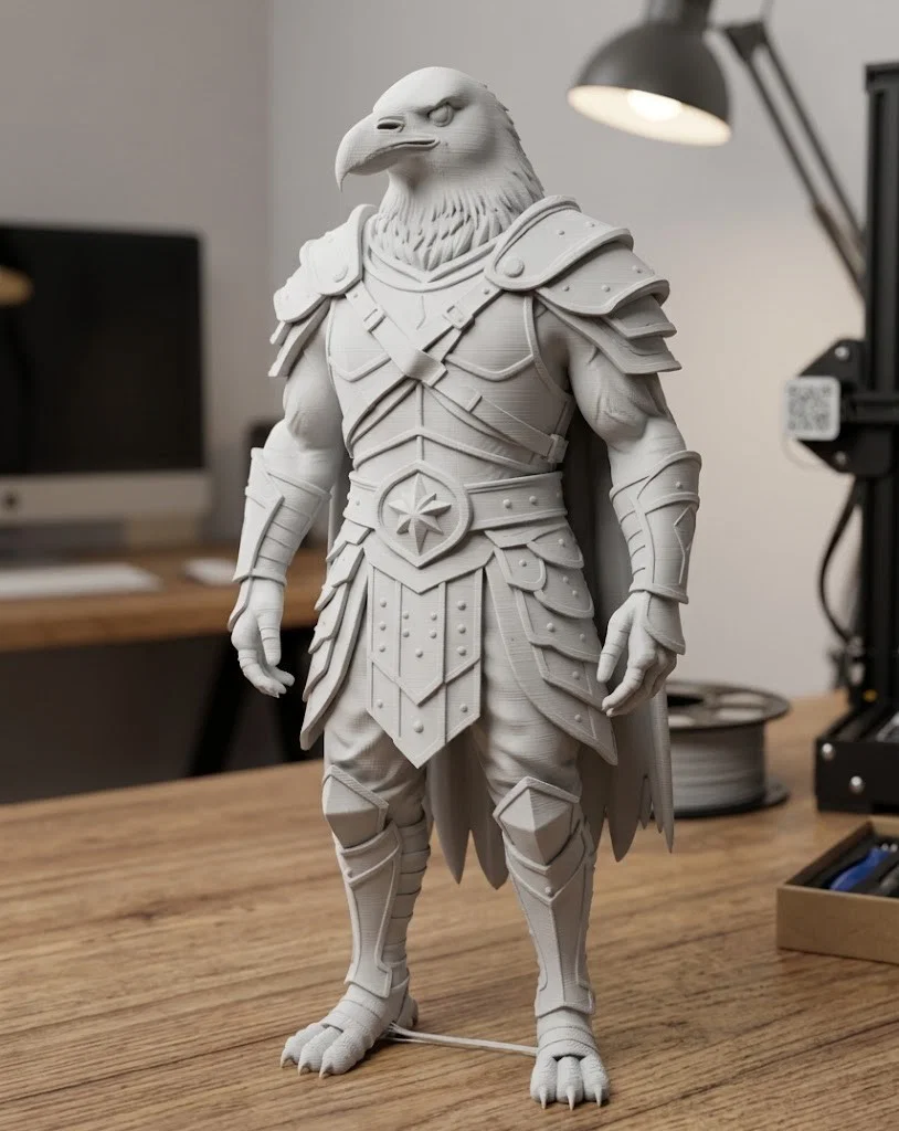 • Chất liệu đề xuất: Nên sử dụng nhựa resin cho máy in SLA để đảm bảo các chi tiết nhỏ như lông vũ và hoa văn trên giáp được sắc nét nhất. Nếu dùng máy in FDM, hãy ưu tiên nhựa PLA chất lượng cao.
