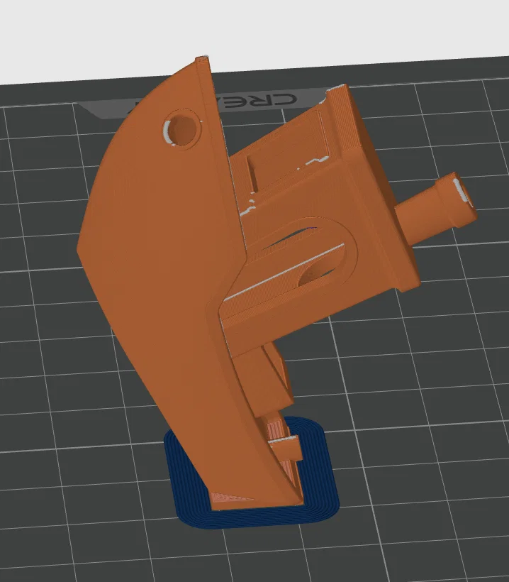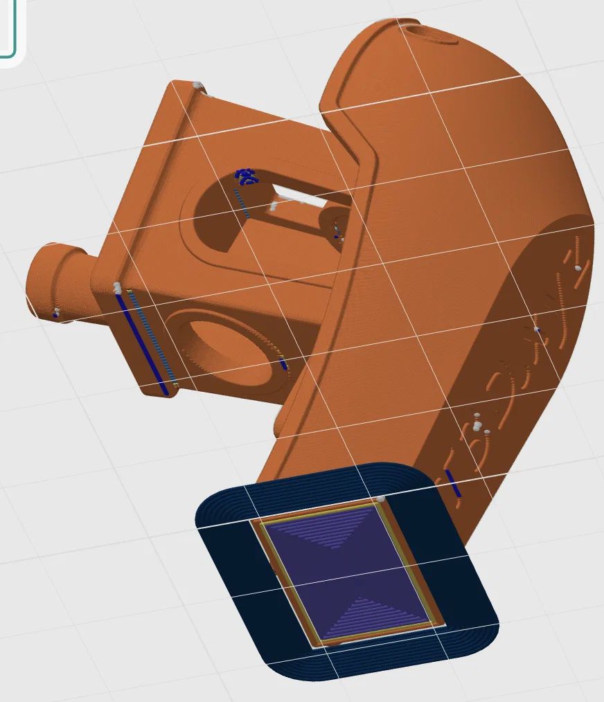 Benchy đã được xoay lại hướng in, sau đó mình thêm một khối nhỏ ở đáy để đảm bảo mẫu có đủ diện tích tiếp xúc với bàn in.