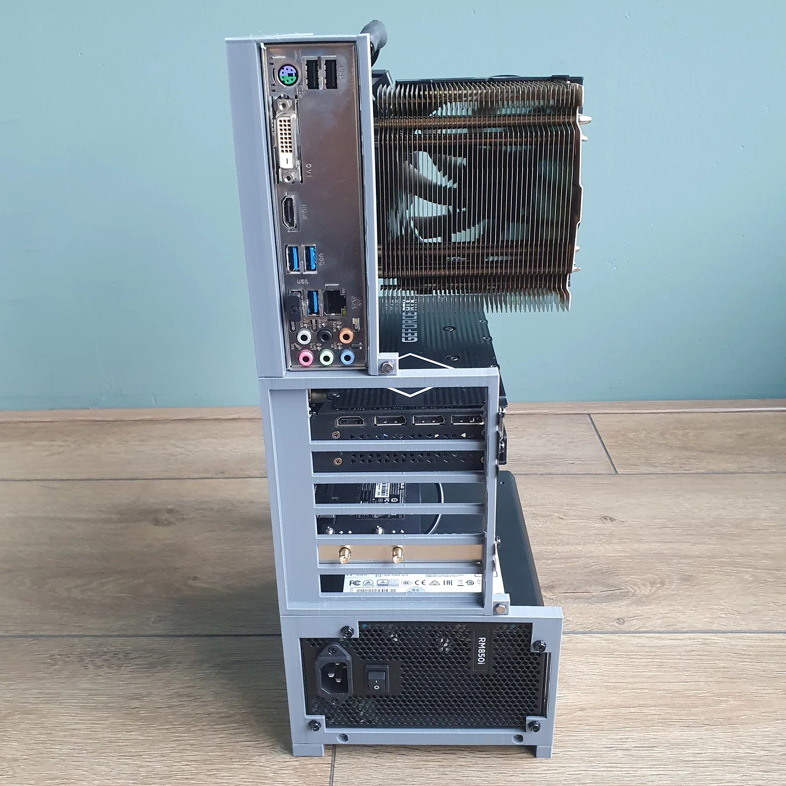 Mẫu khay gắn bo mạch chủ ATX cơ bản, đi kèm khe cắm card PCI, tấm chắn IO, vị trí gắn nguồn và chân đế tùy chọn. Giải pháp lắp ghép dạng snap-fit tiện lợi cho việc lắp ráp PC hoặc làm thiết bị test linh kiện chuyên nghiệp.