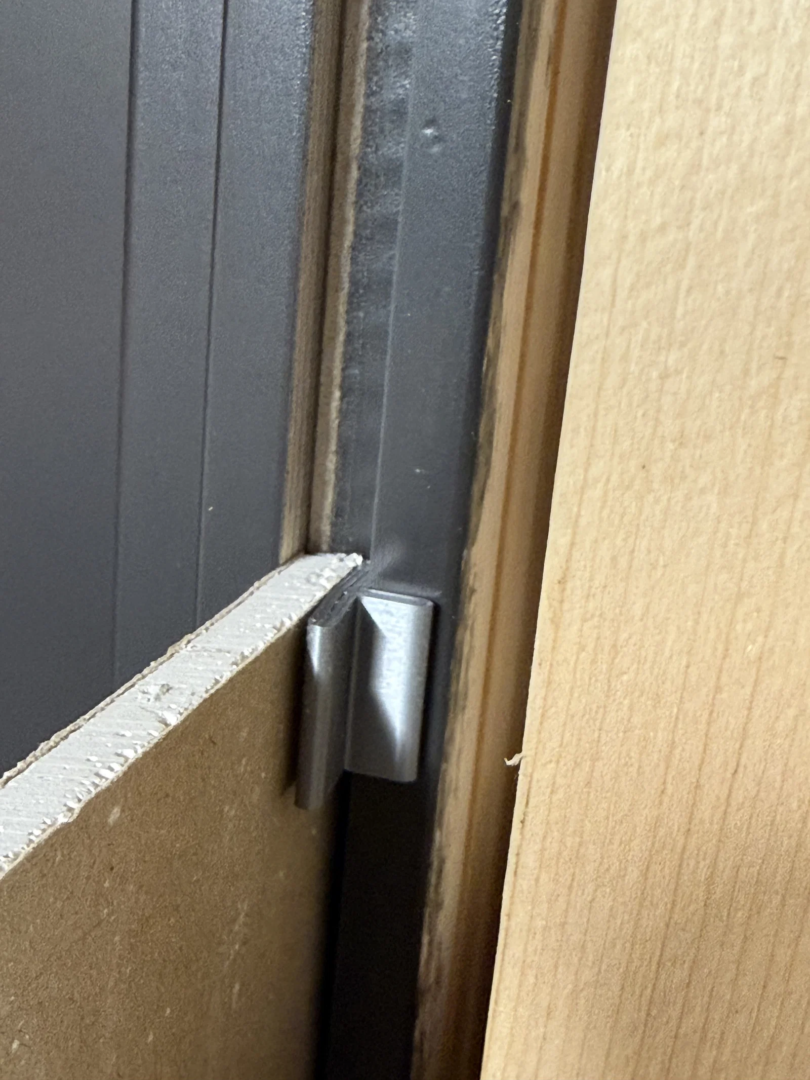 Cái kẹp này giúp mình dễ dàng gắn tấm thạch cao 6.5mm vào các rãnh 10mm trên khung cửa đi và cửa sổ. Kẹp này sẽ dẫn hướng tấm thạch cao vào rãnh, đồng thời bù đắp khoảng trống dư ra để mặt ngoài nhìn đẹp và phẳng hơn.