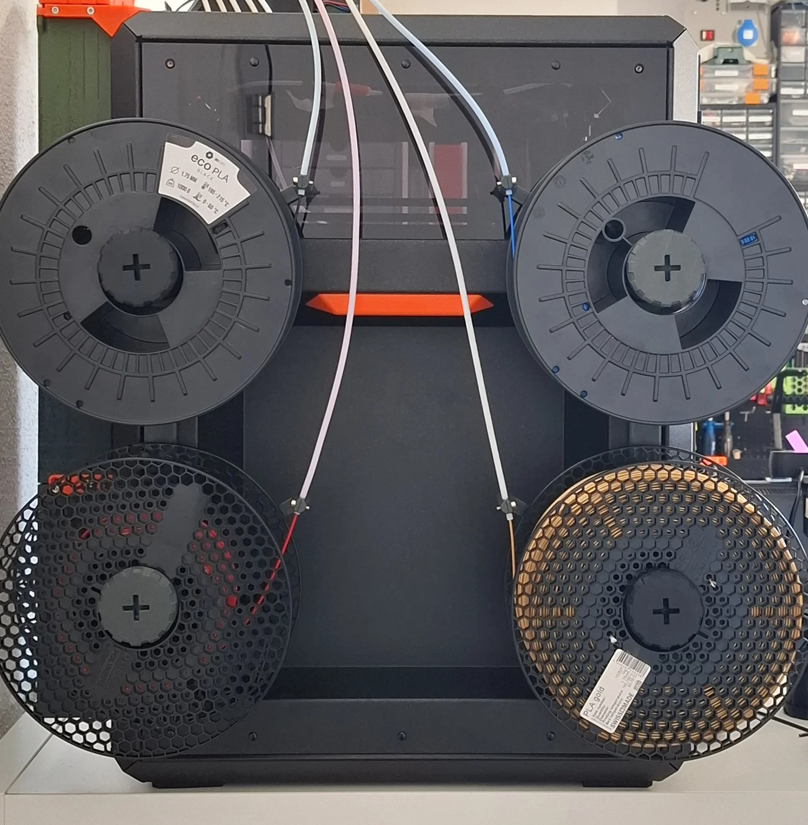 Giá đỡ 4 cuộn dây tóc thiết kế riêng cho máy in CORE One/+, cực kỳ phù hợp cho các cấu hình nhiều vật liệu (MMU3). Thiết kế tận dụng hệ thống Prusa universal pucks, đi kèm hướng dẫn lắp ráp chi tiết giúp bạn dễ dàng thực hiện tại nhà.
