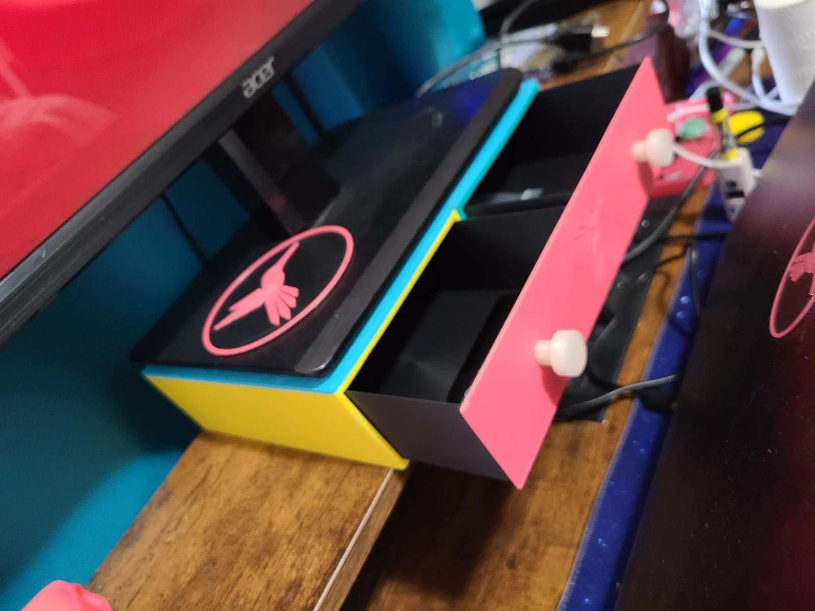 Đây là mẫu hộp siêu mỏng kèm hai ngăn kéo, mình thiết kế để có thể in xong chỉ trong một ngày trên máy in khổ nhỏ. Mình đã phải cắt một vài chi tiết làm đôi trong phần mềm slicer để in được trên máy Neptune 4 Base. Khi lắp ráp, các bạn dùng keo dán sắt (super glue) và 2 con ốc nhỏ cho phần tay nắm, ốc của mình hình như là loại 2mm.