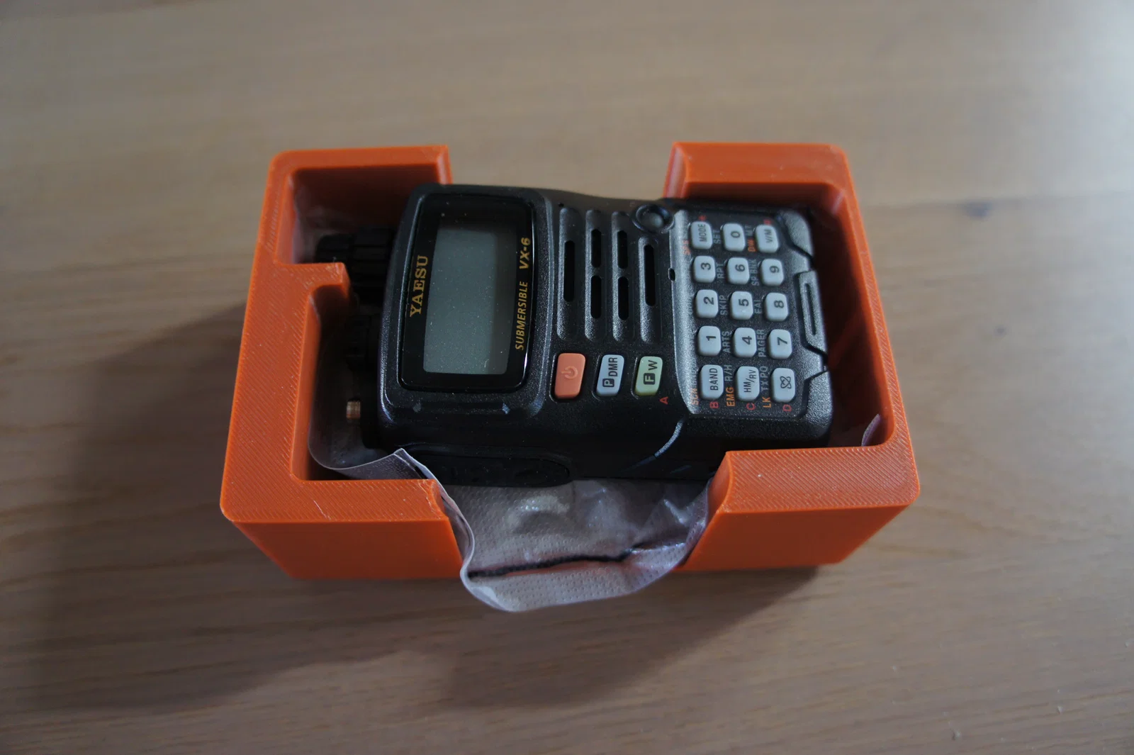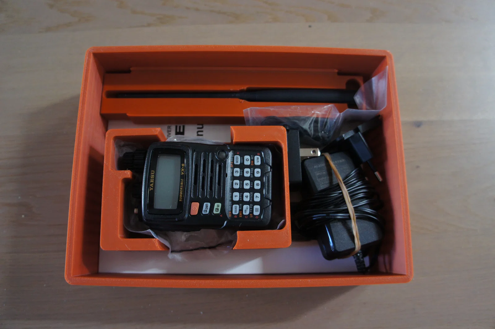 Mình đã tự thiết kế một chiếc hộp bảo vệ tiện dụng cho chiếc Yaesu VX-6R của mình. Hộp có đủ không gian để đựng máy, sách hướng dẫn, ăng-ten, bộ sạc cùng các phụ kiện đi kèm một cách gọn gàng và an toàn.