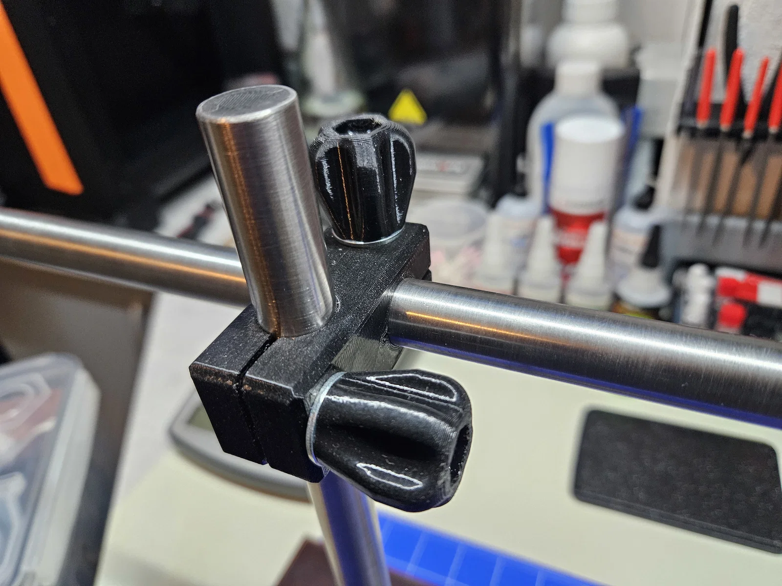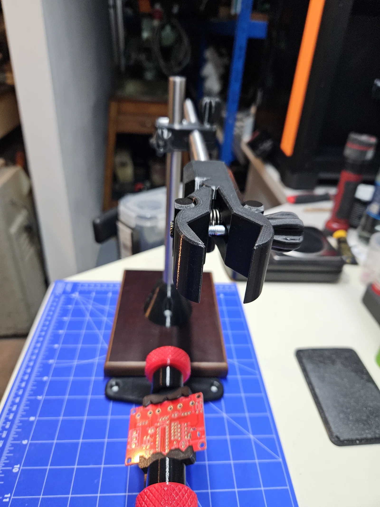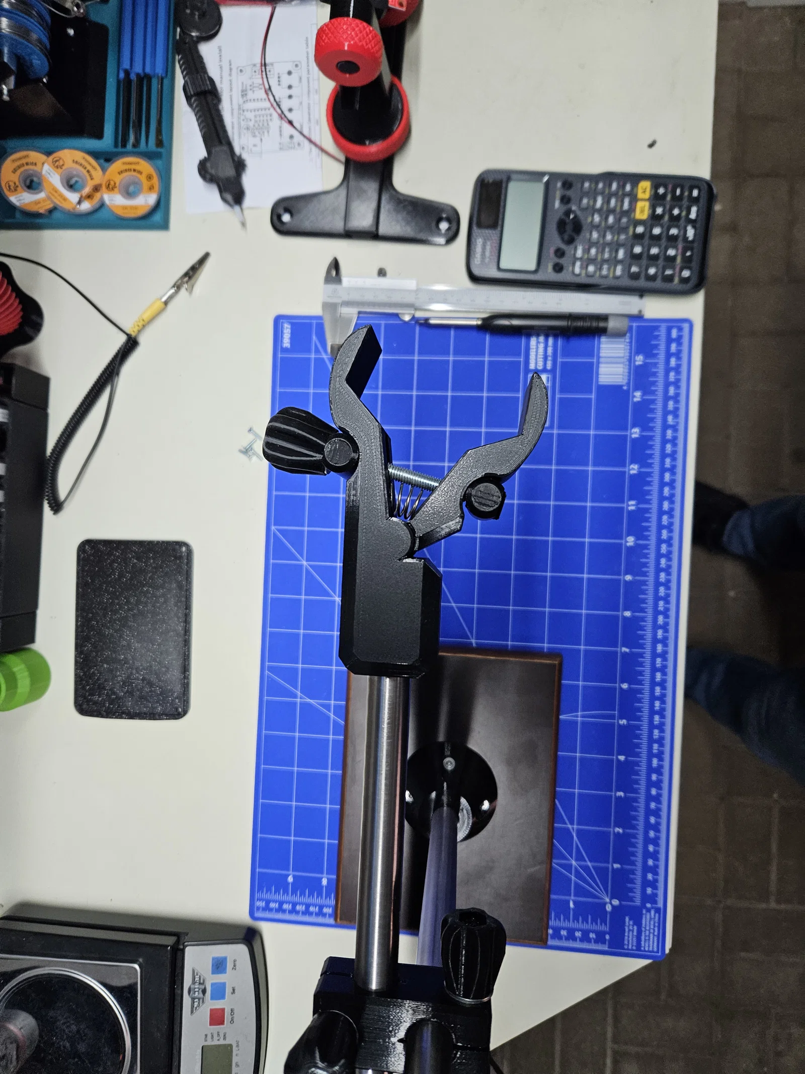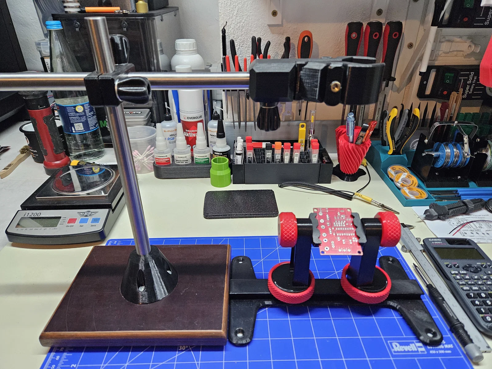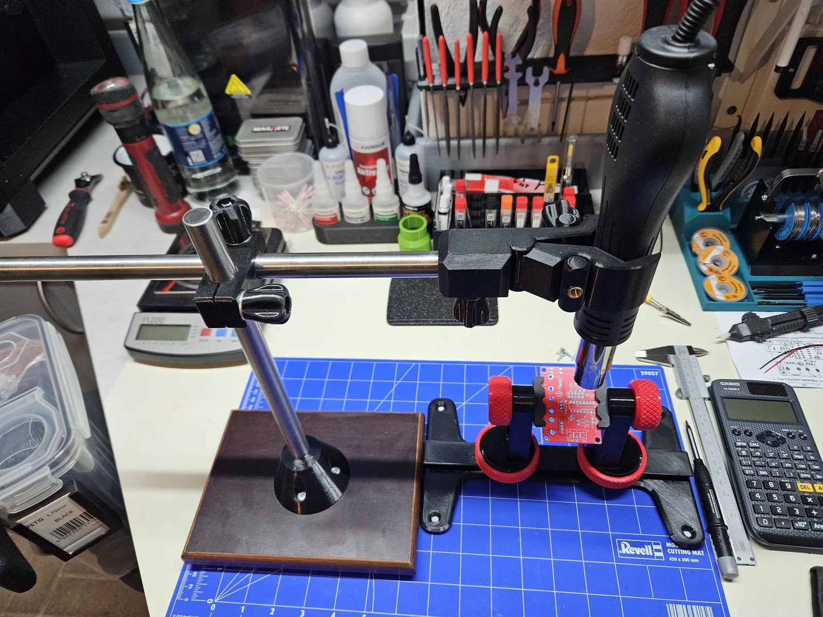 Bộ giá đỡ phòng thí nghiệm tiện dụng được thiết kế riêng cho máy khò nhiệt YIHUA 959D-II. Dự án bao gồm các thành phần in 3D kết hợp với khung kim loại và gỗ chắc chắn, giúp cố định thiết bị chính xác cho công việc sửa chữa của bạn.