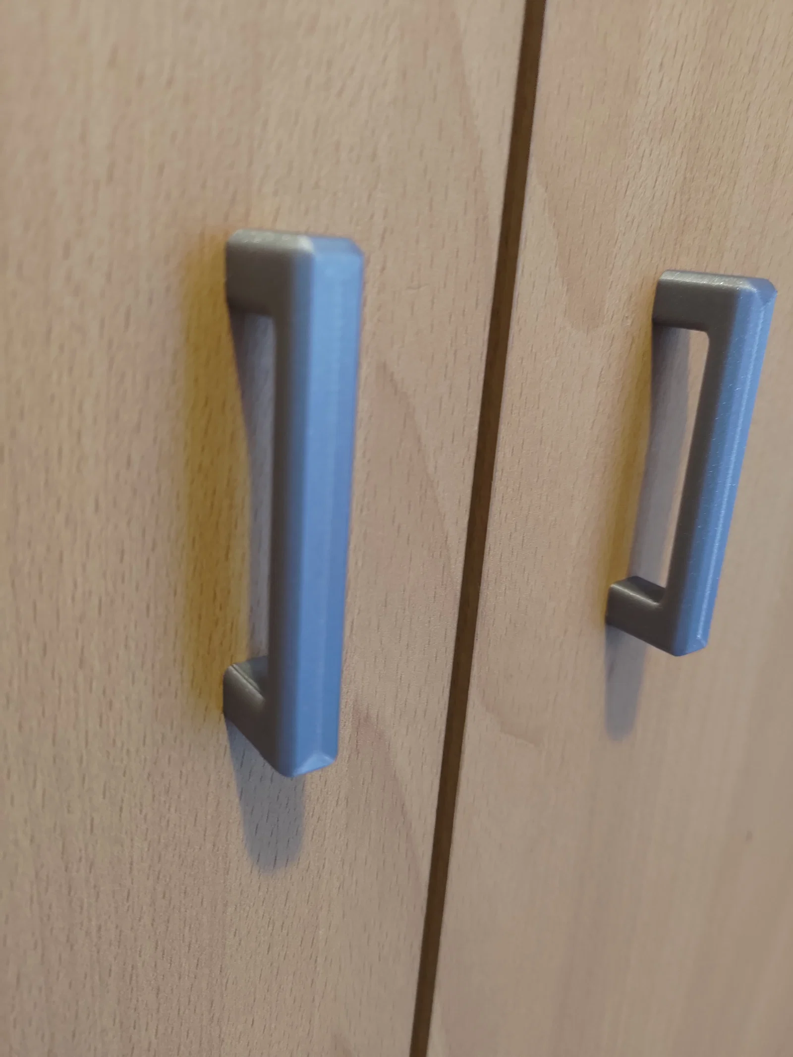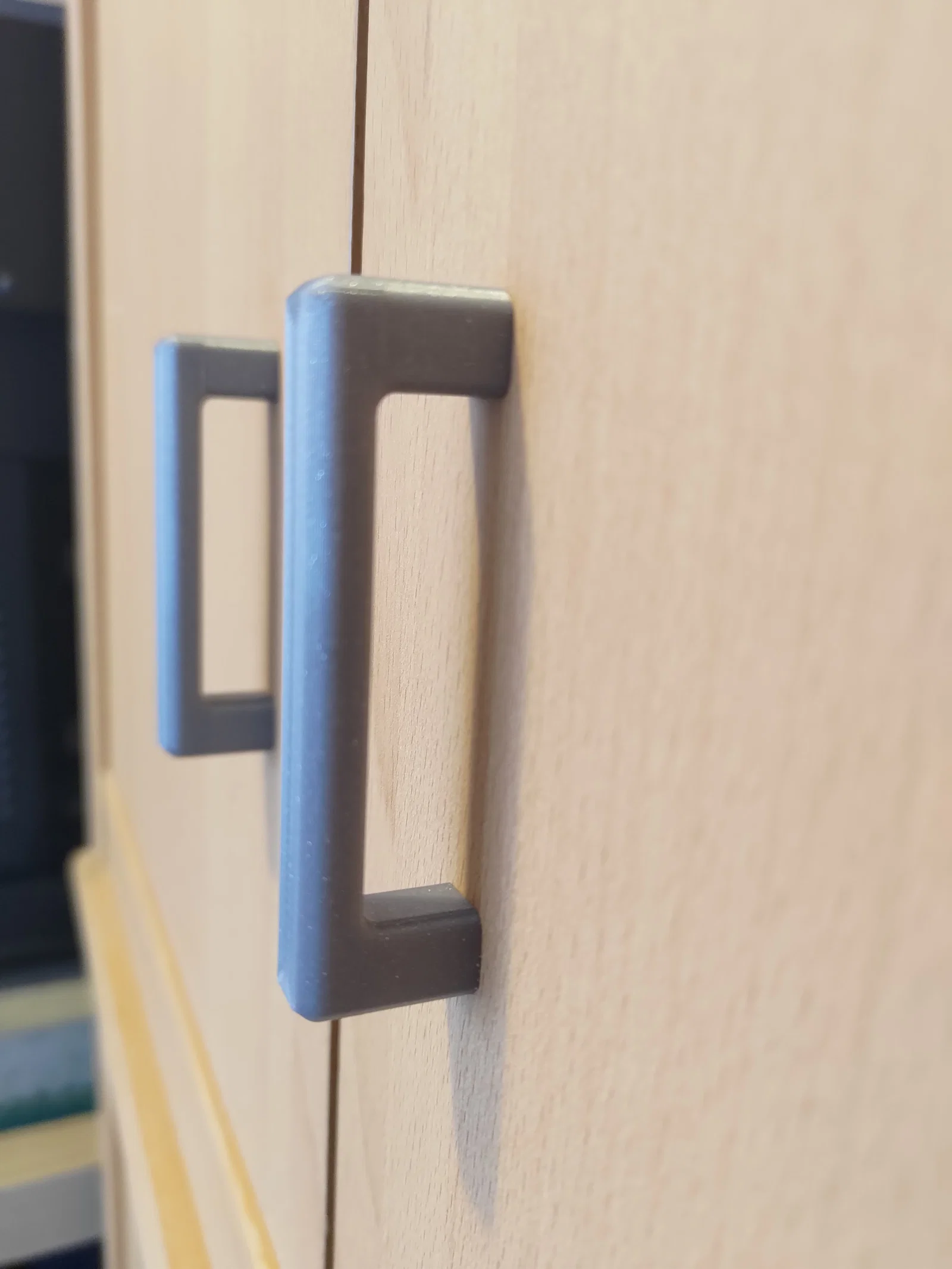 Mẫu tay nắm cửa hiện đại, tinh tế dành cho tủ búp phê, ngăn kéo hoặc tủ đồ với khoảng cách lỗ 64mm. File thiết kế đi kèm giúp bạn dễ dàng tùy chỉnh kích thước theo nhu cầu sử dụng thực tế của gia đình.