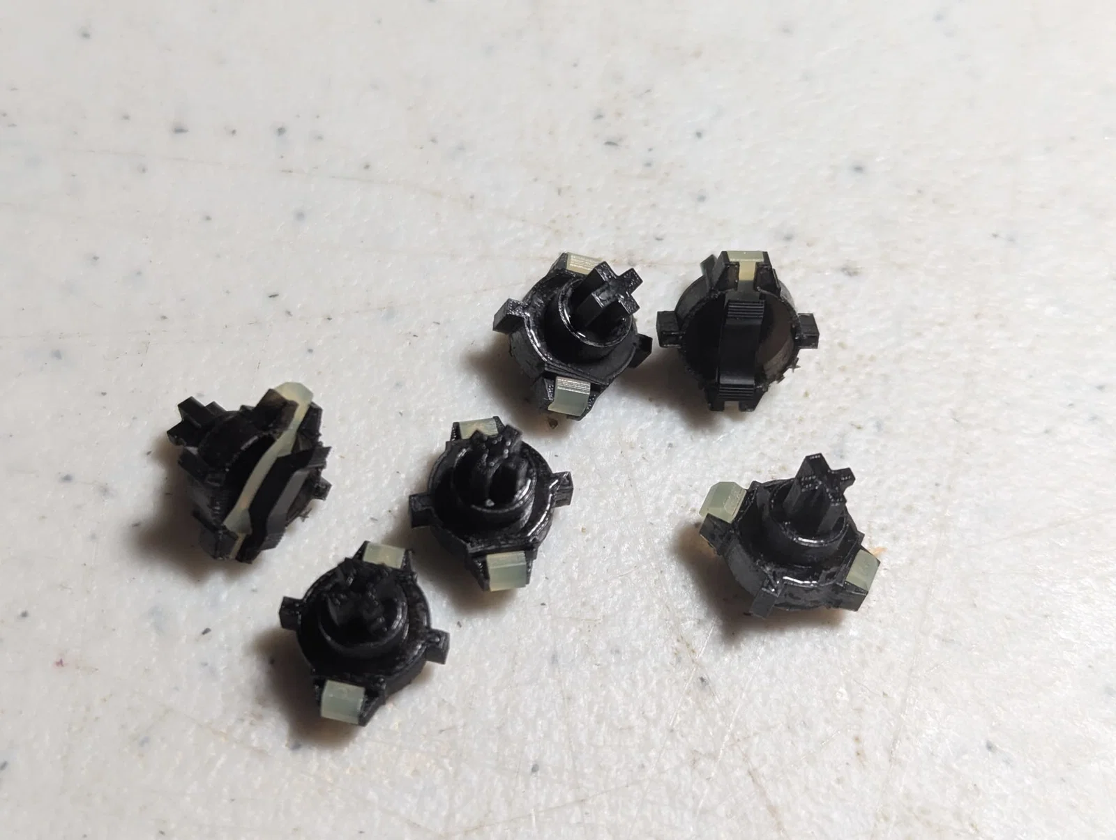 Mình đã đặt in linh kiện này (phiên bản hàng trên cùng màu trắng) thông qua dịch vụ trực tuyến bằng nhựa resin độ nhớt thấp (JLC Black Resin từ JLC3DP). Mình không khuyến khích dùng máy in FDM, vì dù bạn có thể đạt được độ chi tiết tốt, độ bám dính giữa các lớp vẫn có thể gây vấn đề khi tháo keycap (đừng hỏi sao mình biết nhé).