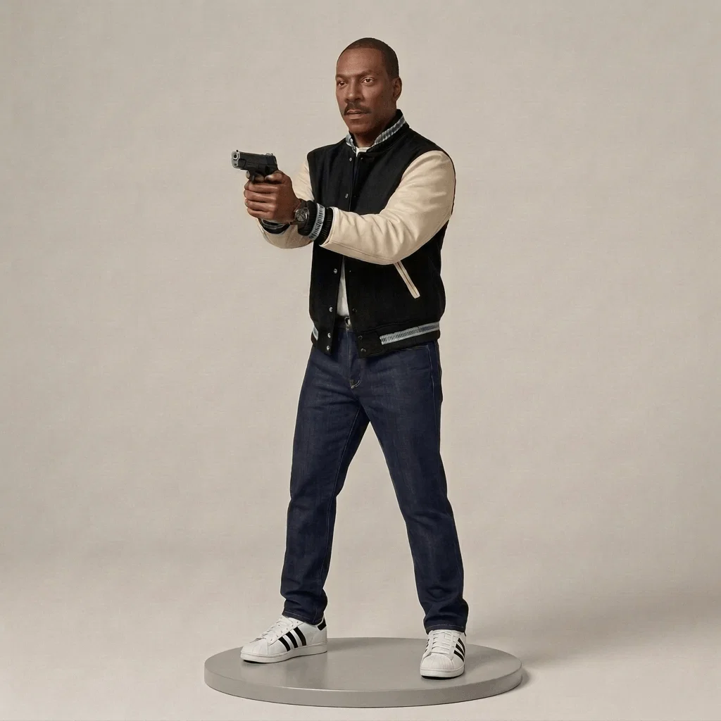 Nếu bạn là một fan hâm mộ cuồng nhiệt của dòng phim hành động hài hước thập niên 80, chắc chắn bạn không thể bỏ qua nhân vật thám tử Axel Foley đầy cá tính do nam diễn viên Eddie Murphy thủ vai. Mẫu in 3D này tái hiện chân thực hình ảnh Axel Foley với phong cách đặc trưng: chiếc áo khoác varsity sành điệu, quần jean bụi bặm và đôi giày thể thao quen thuộc. Đây là một tác phẩm sưu tầm tuyệt vời cho bất kỳ không gian trưng bày nào, mang lại cảm giác hoài niệm về thời kỳ hoàng kim của điện ảnh Hollywood.