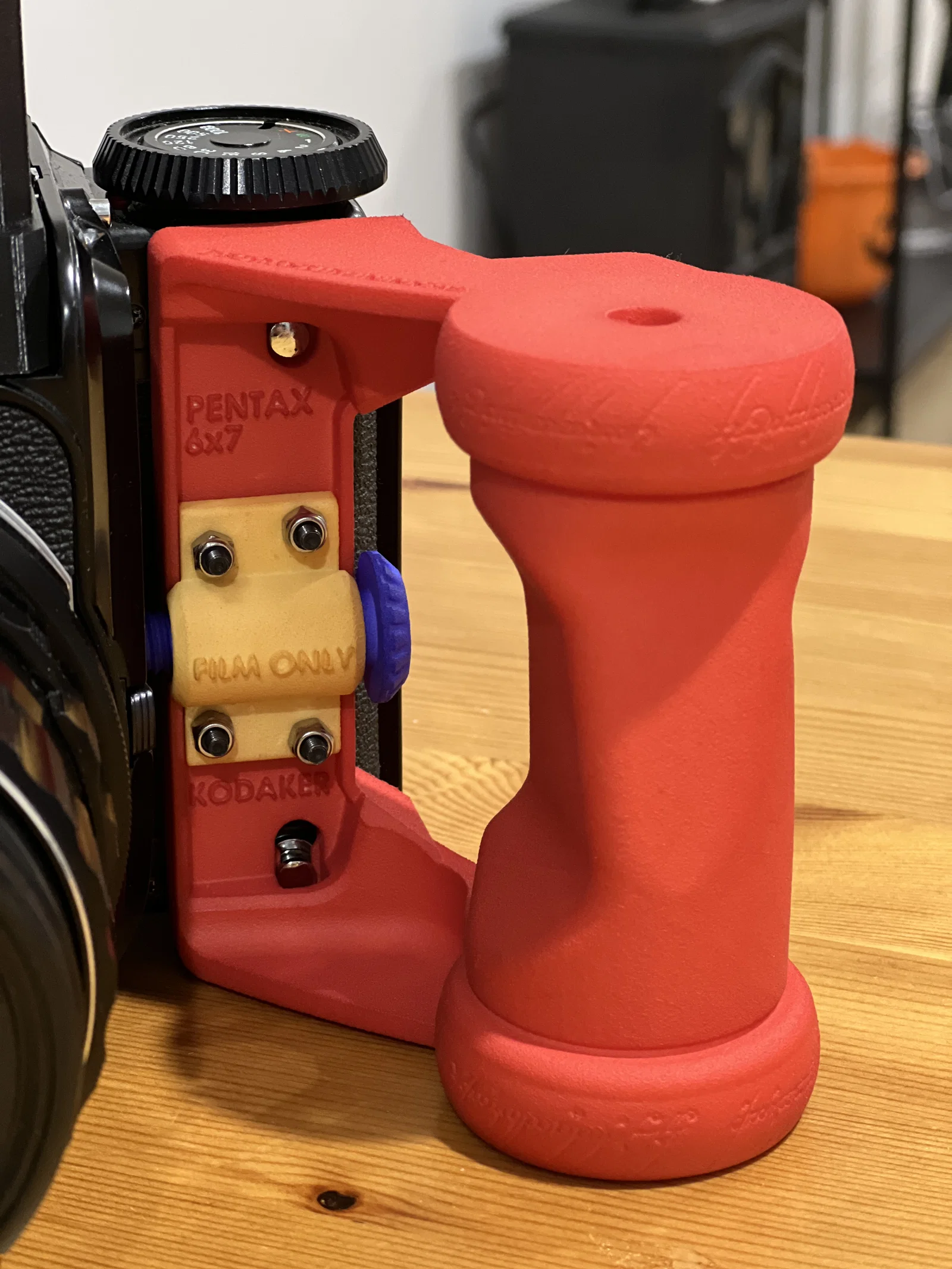 Nâng cấp trải nghiệm chụp ảnh với chiếc máy Pentax 67 của bạn bằng tay cầm bên trái (left hand grip) được thiết kế đặc biệt. Sản phẩm này giúp tăng cường độ ổn định, giảm mỏi cổ tay và hỗ trợ cầm nắm máy chắc chắn hơn trong mọi tình huống chụp ảnh. Với thiết kế công thái học và khả năng lắp đặt các phụ kiện đèn flash tiện lợi, đây là món phụ kiện không thể thiếu cho những người yêu thích nhiếp ảnh film khổ trung. Hãy in sản phẩm này bằng vật liệu bền bỉ như PETG để đảm bảo sự an toàn và ổn định tuyệt đối cho chiếc máy ảnh giá trị của bạn.