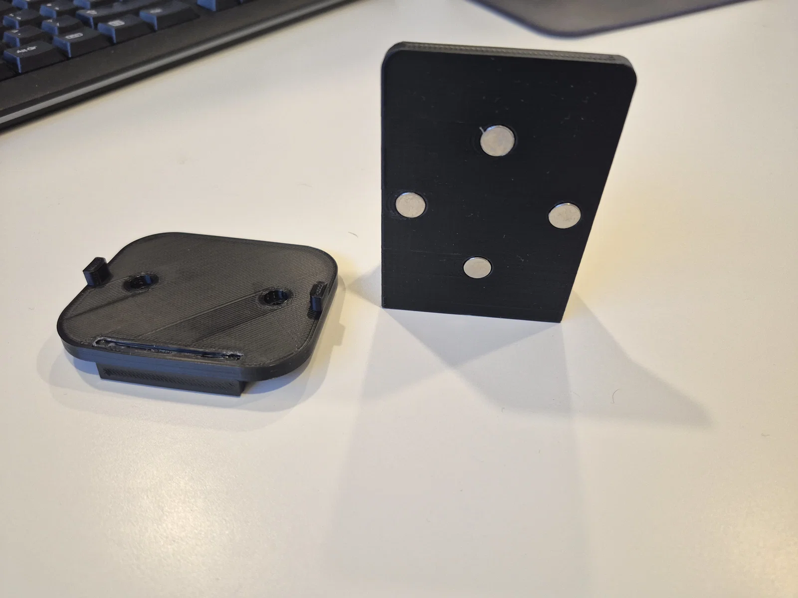 Mình đã in phần trên thành hai mảnh, sau đó chỉ cần ấn phần tv_lip vào khe của phần đế và dán một chút keo, mặc dù thực tế không cần keo vẫn ổn. Sau đó, bạn có thể dán thêm một miếng nỉ mỏng lên phần tv_lip để tránh làm trầy xước TV nhé.
