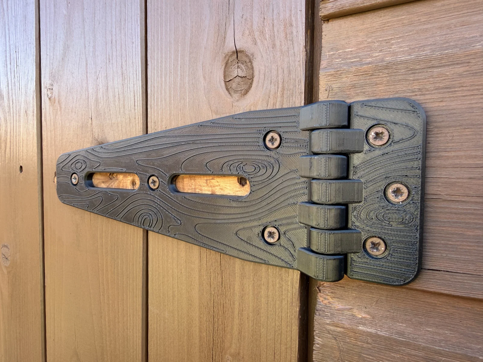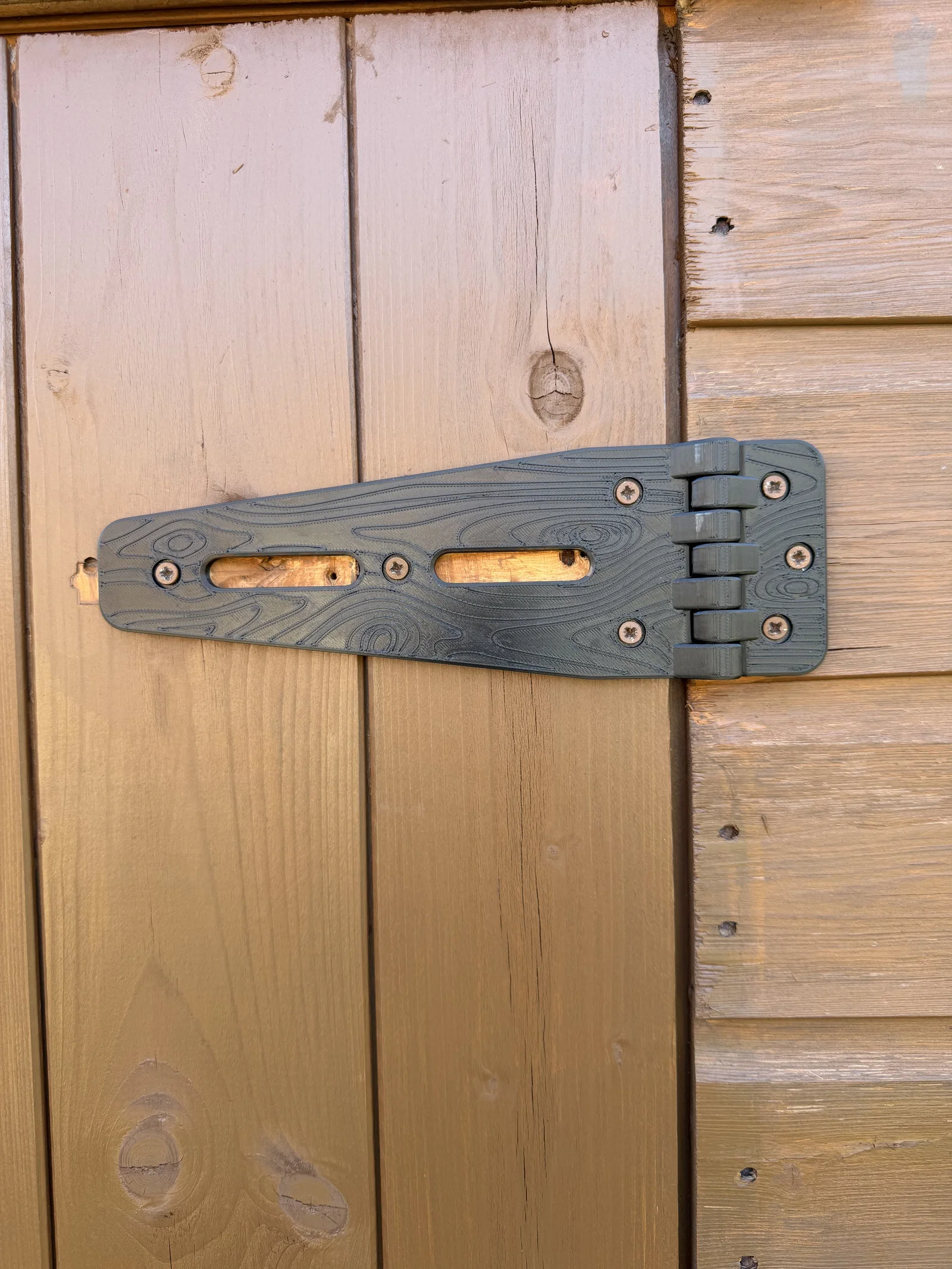 Hiện tại mình chưa có dự án 3D nào thú vị để làm, nên nhân lúc đang sơn lại cái kho, mình quyết định thiết kế và in một bộ bản lề mới cho cửa kho. Hy vọng là chúng sẽ chịu lực tốt. Kích thước bản lề khoảng 230mm x 75mm và dày 6mm.