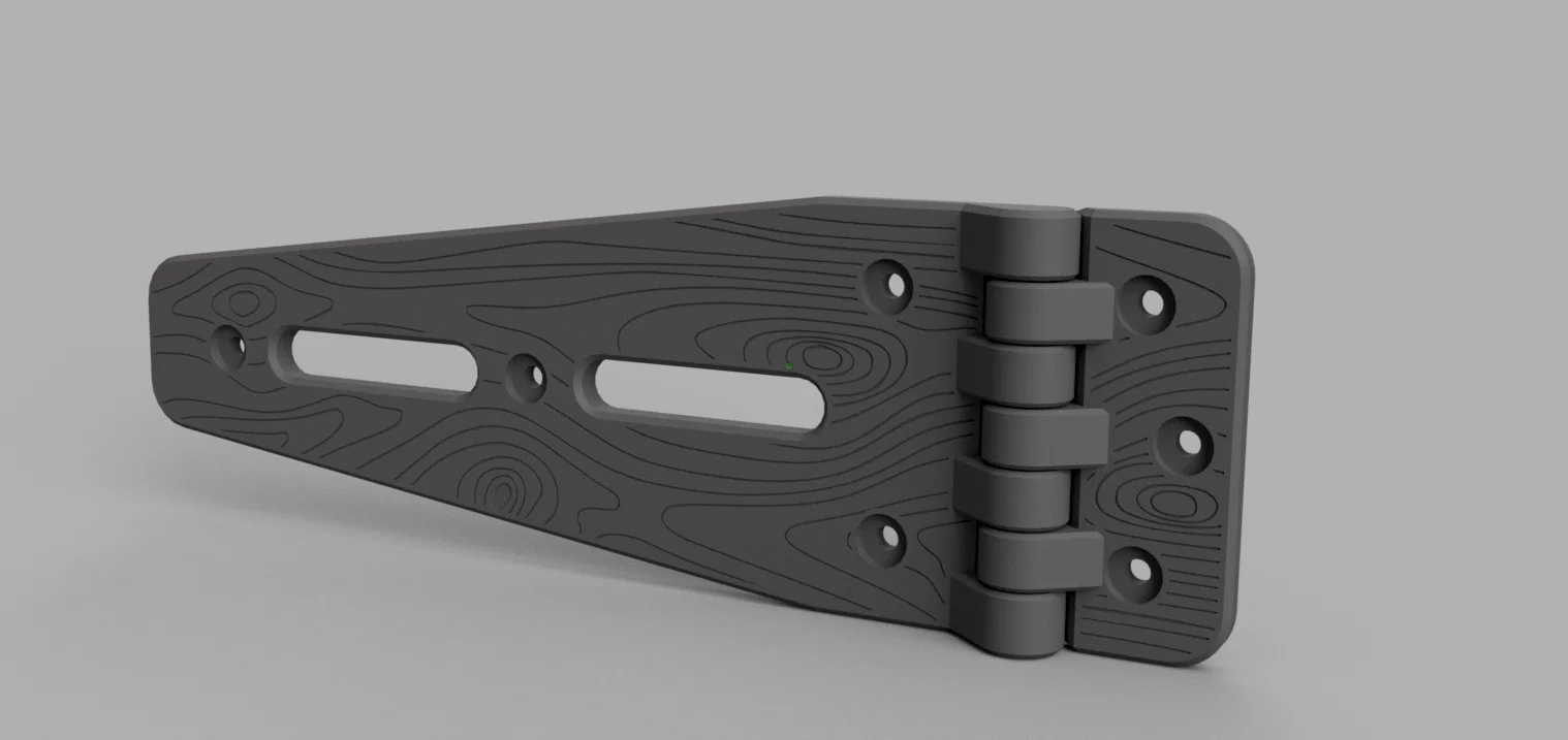 Bộ bản lề cửa kho kích thước lớn (230mm x 75mm) được thiết kế để in nguyên khối. Sử dụng nhựa PETG để đạt độ bền tối ưu. Mẫu thiết kế tiện lợi, không cần lắp ráp, chỉ cần in xong chờ nguội là dùng được ngay.