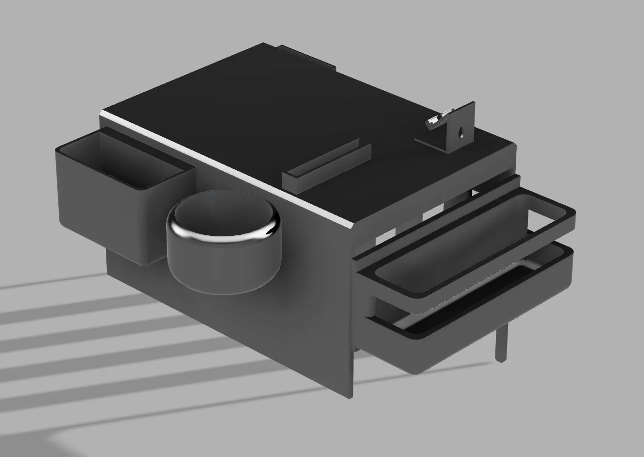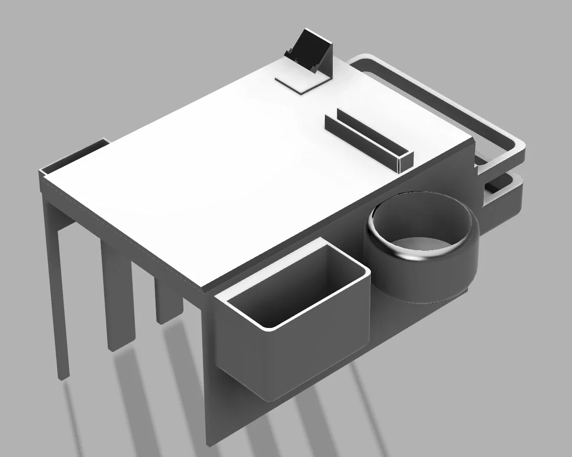 Tay vịn sofa tối giản tích hợp giá đỡ điện thoại, khay để cốc, hộp lưu trữ và khe cắm mắt kính. Thiết kế được tối ưu cho các dòng ghế có tay vịn rộng 210mm. Lưu ý: Cần máy in khổ lớn từ 21cm trở lên để in ấn hiệu quả.