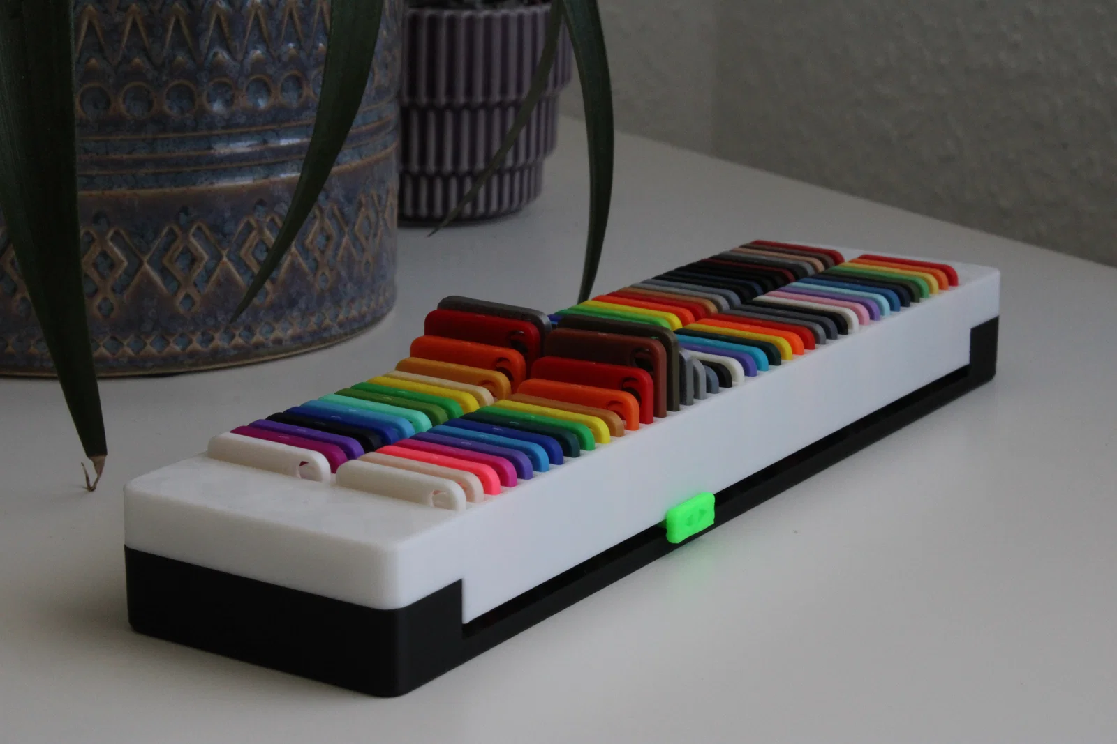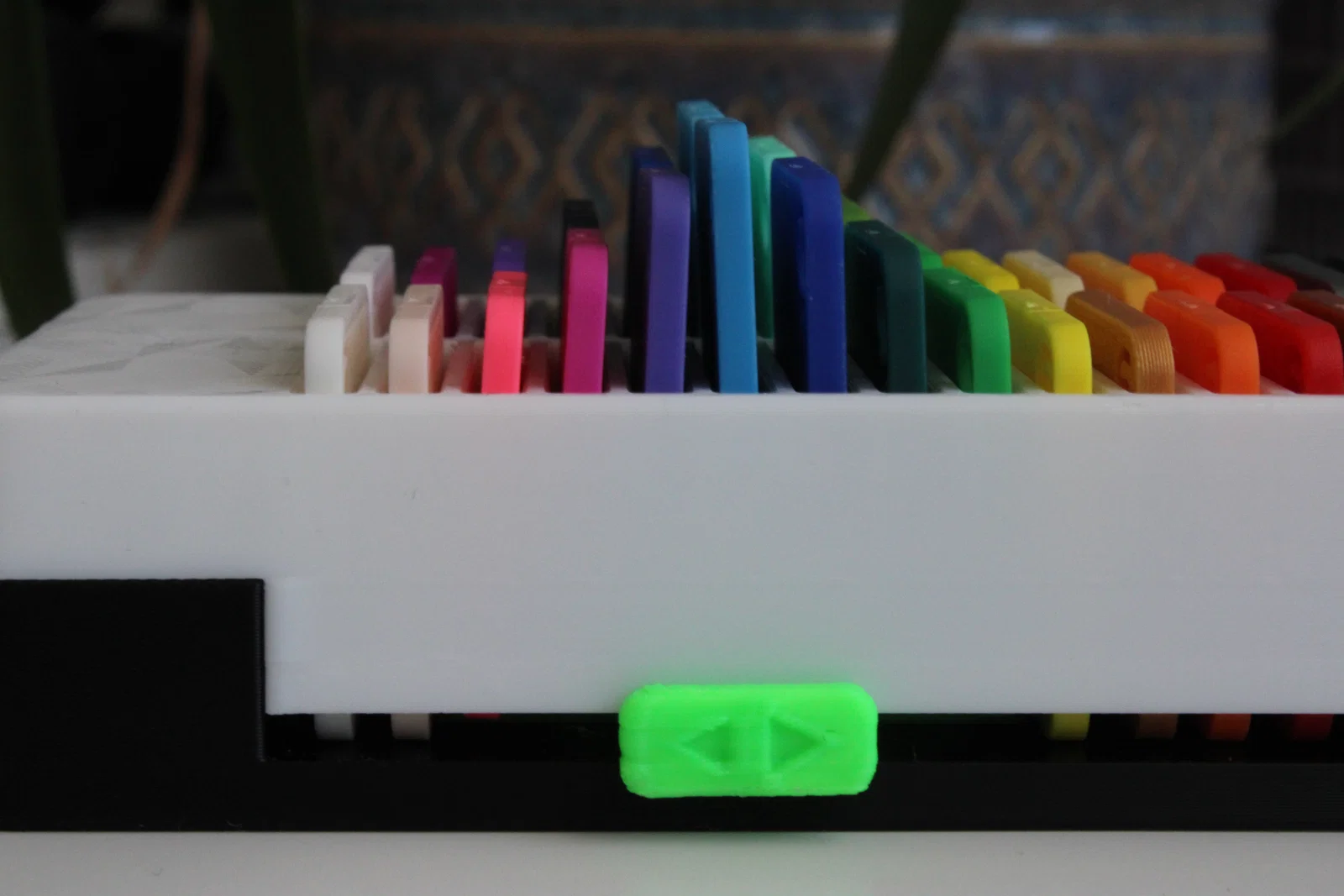 Kệ trưng bày và sắp xếp tích hợp thanh trượt, chứa được 80 mẫu thử nhựa Bambulab. Toàn bộ thiết kế có thể in 3D hoàn chỉnh mà không cần dùng đến keo dán hay ốc vít, giúp không gian in ấn của bạn trở nên gọn gàng và chuyên nghiệp hơn.
