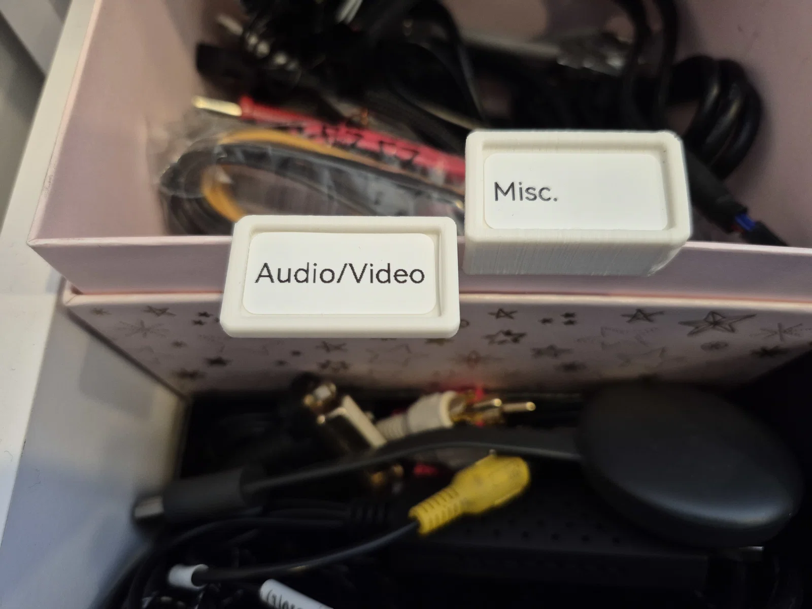 Thế nên mình đã tự thiết kế vài loại đế gắn nhãn đa năng cho nhiều trường hợp khác nhau. Bạn chỉ cần in đế ra rồi dán nhãn lên. Hoặc nếu không muốn dán, bạn cũng có thể dùng bút Sharpie viết trực tiếp lên đó luôn cũng được.