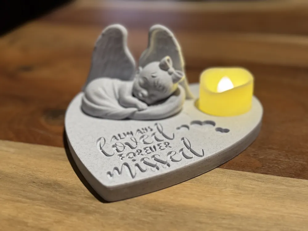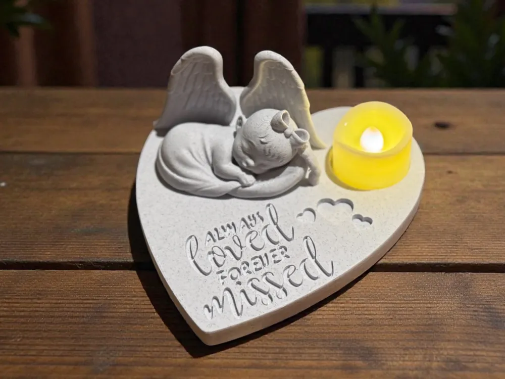 Mẫu tượng thiên thần nhỏ đáng yêu này là sự tri ân nhẹ nhàng để tưởng nhớ về một sinh linh bé bỏng. Với thiết kế tinh tế tích hợp khay nến tealight, đây là vật kỷ niệm ý nghĩa giúp giữ trọn ký ức về bé trong trái tim mỗi người.