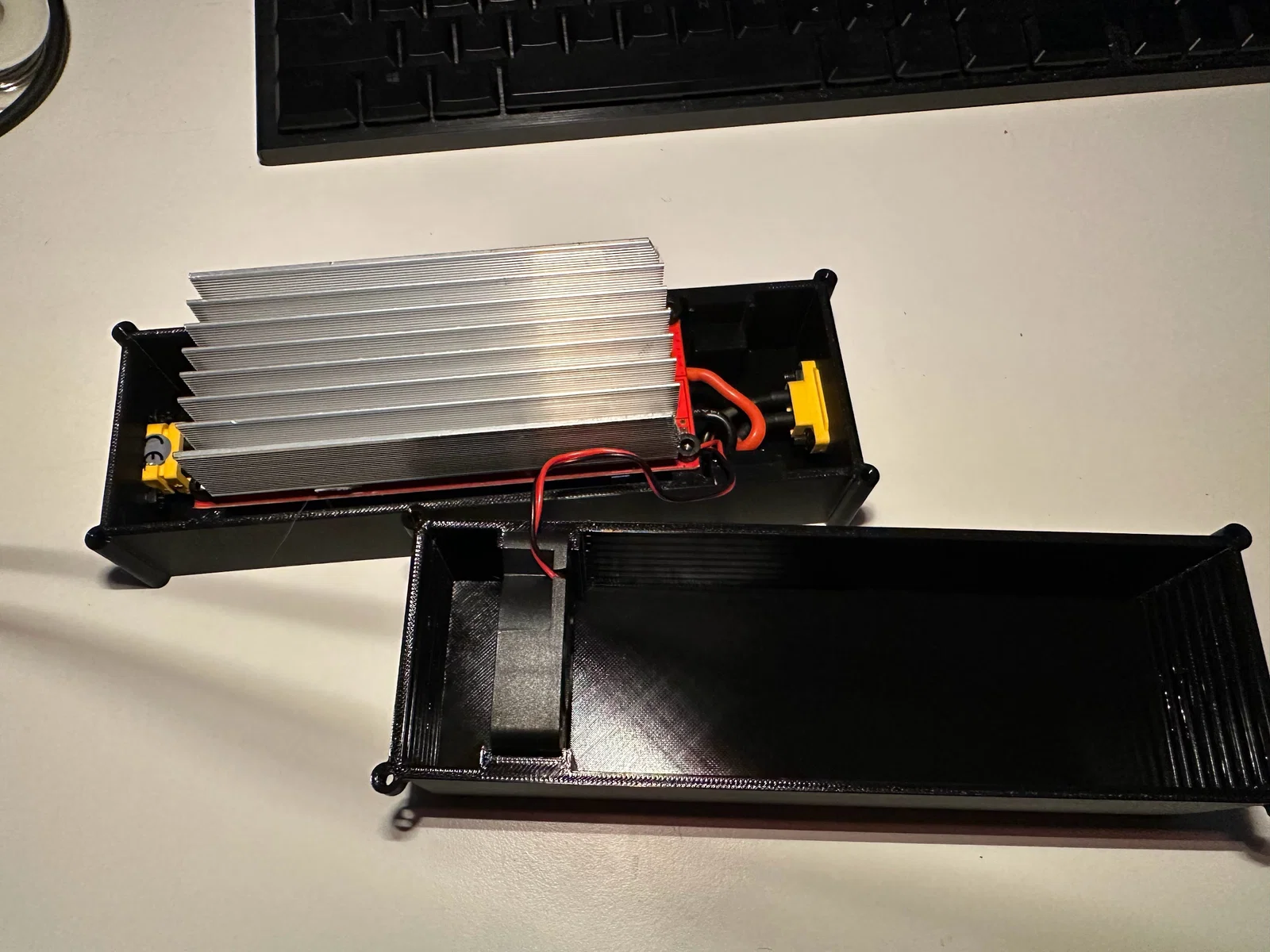 Thiết kế vỏ bảo vệ cho các loại module tăng áp (boost converter) công suất 1200W/1800W phổ biến trên các trang thương mại điện tử như Temu hoặc AliExpress. Bộ tài liệu đi kèm file nguồn FreeCAD 1.1 và hướng dẫn danh sách ốc vít, jack cắm cần thiết.