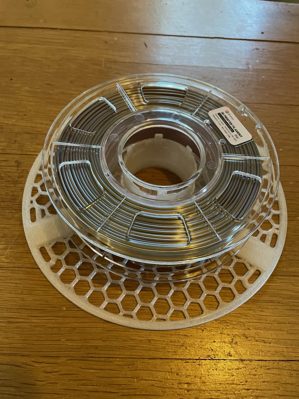 Sử dụng cái này để lắp vừa các cuộn nhựa nhỏ 250g (1/4 kg) vào máy Bambu AMS. Lưu ý là các cuộn nhựa phải có các khe cắt cách nhau ít nhất 1/3 vòng tròn. Nếu là loại cuộn đặc thì đáng tiếc là nó sẽ không dùng được.