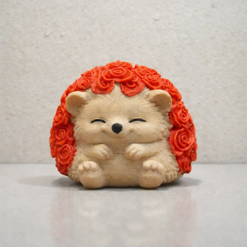 Mô hình chú nhím này được thiết kế như một biểu tượng nhỏ bé của sự ấm áp, tình cảm và niềm vui nhẹ nhàng. Với tư thế điềm tĩnh, đôi mắt nhắm nghiền cùng lớp gai được chạm khắc từ những đóa hồng, thiết kế này mang đến một cảm giác dịu dàng và dễ chịu. Đây là lựa chọn tuyệt vời để trang trí trong dịp Valentine, làm quà tặng đầy ý nghĩa hoặc làm vật phẩm decor xinh xắn, mang lại nụ cười bình yên cho mọi người.