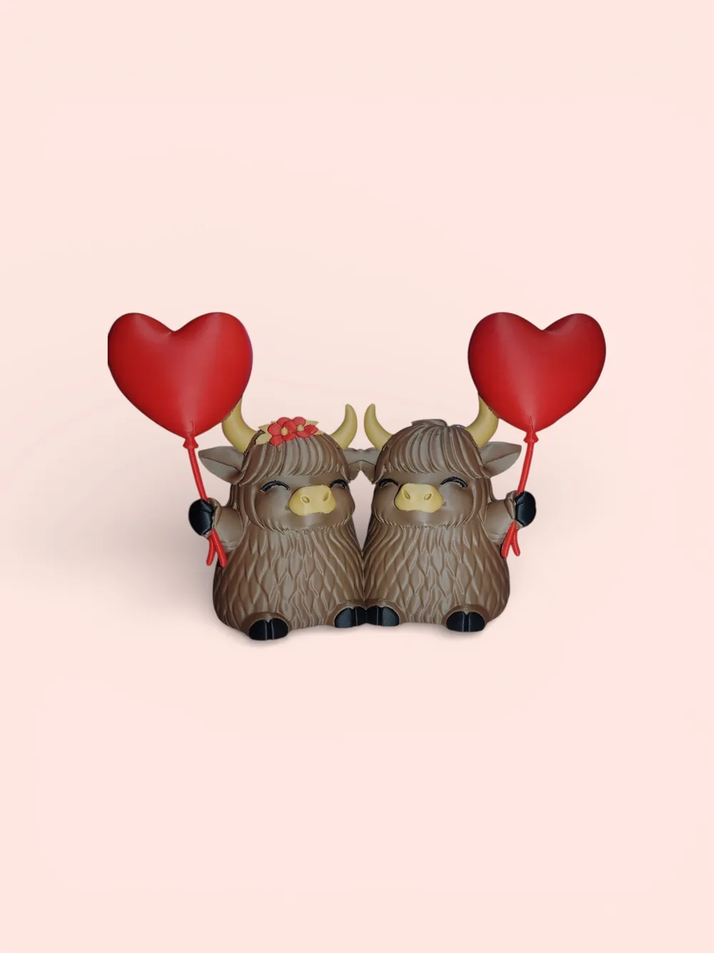 Một cặp bò Highland siêu dễ thương đang cầm những quả bóng bay trái tim, được thiết kế để mang lại sự ấm áp, niềm vui và một chút tình cảm cho không gian của bạn. Với biểu cảm điềm tĩnh và hình dáng tròn trịa, mô hình này là món đồ trang trí đầy cuốn hút cho ngày Lễ Tình Nhân hoặc làm một món quà vô cùng ý nghĩa.