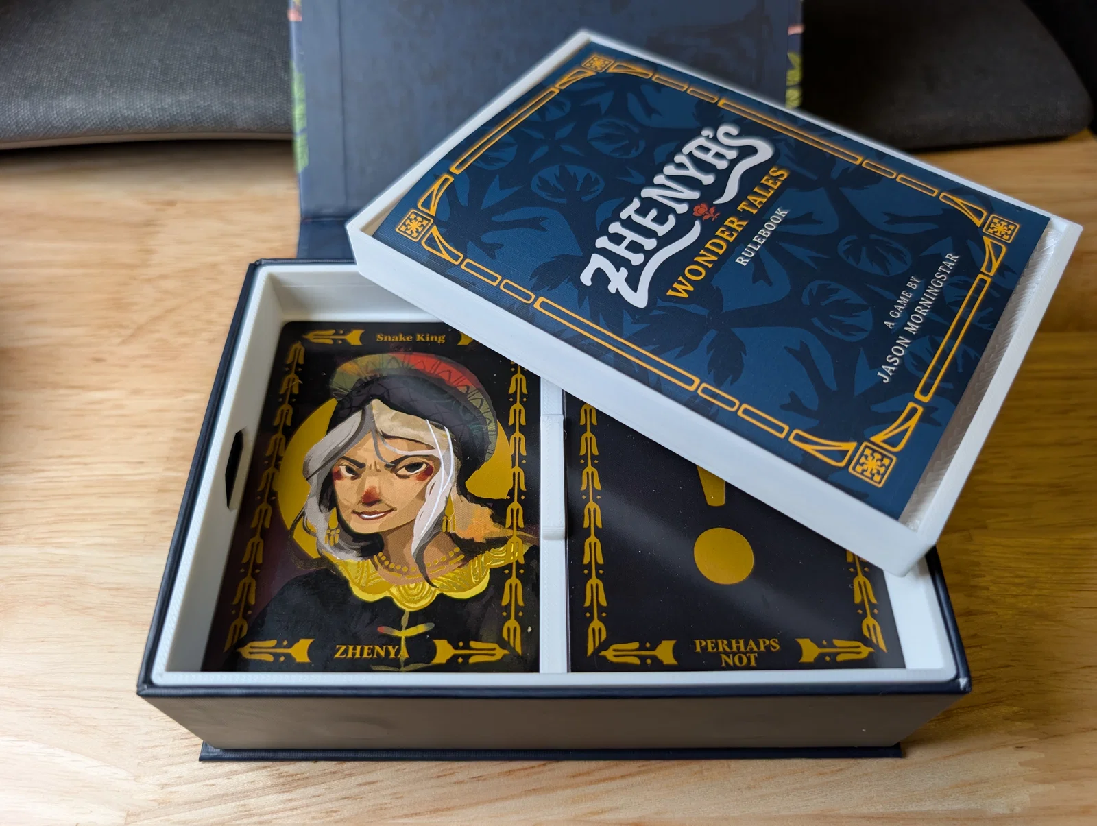 Đây là phụ kiện thay thế cho khay giấy đi kèm trong hộp game Zhenya's Wonder Tales, giúp giữ các lá bài không bị xáo trộn hoặc rơi ra ngoài. Độ dung sai (tolerance) của mẫu in này khá khít, tuy nhiên bạn chỉ cần giữ thẳng tay khi lắp vào là sẽ rất dễ dàng.